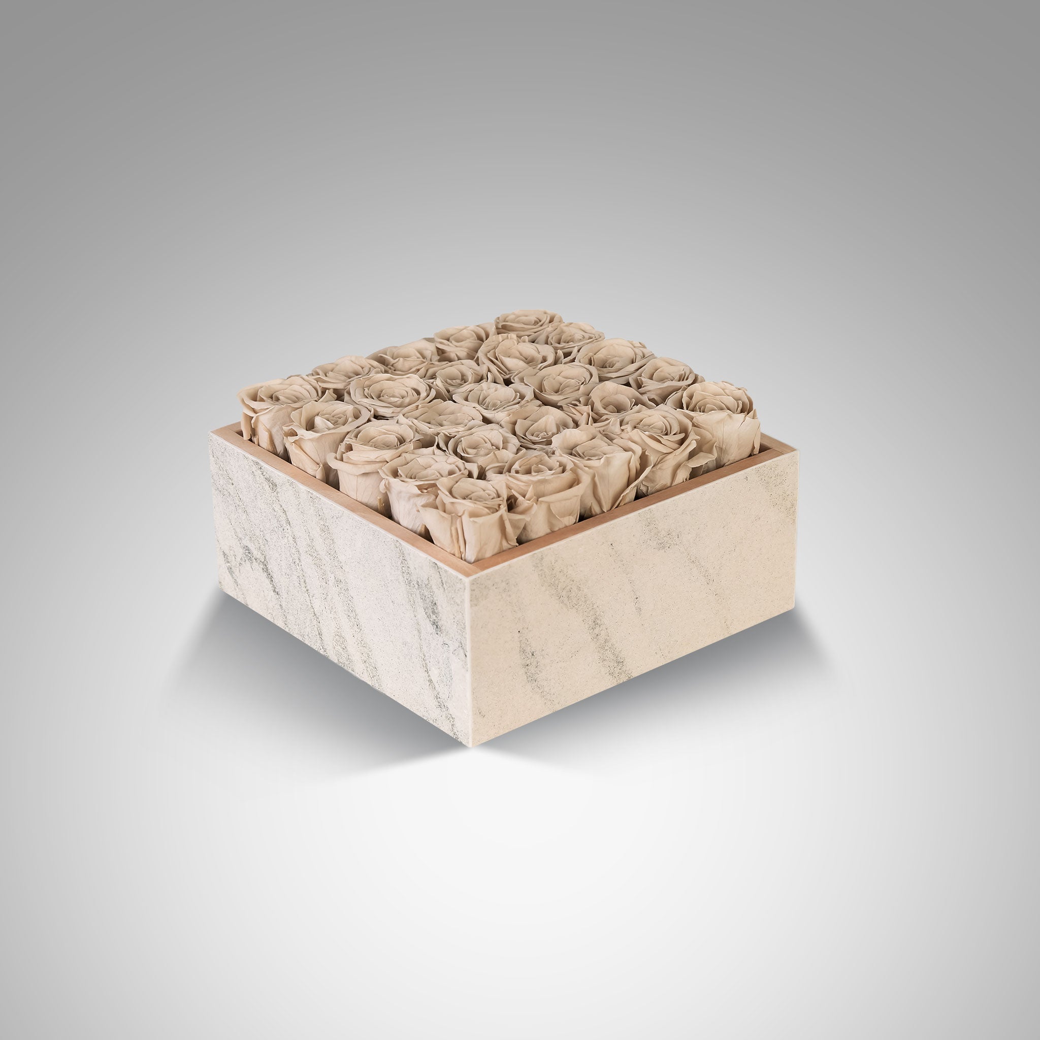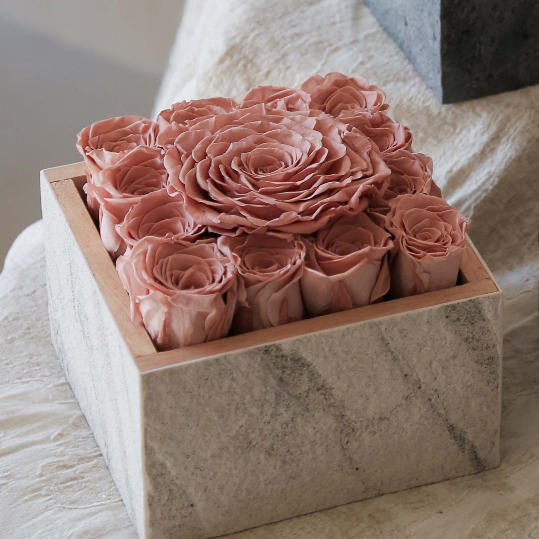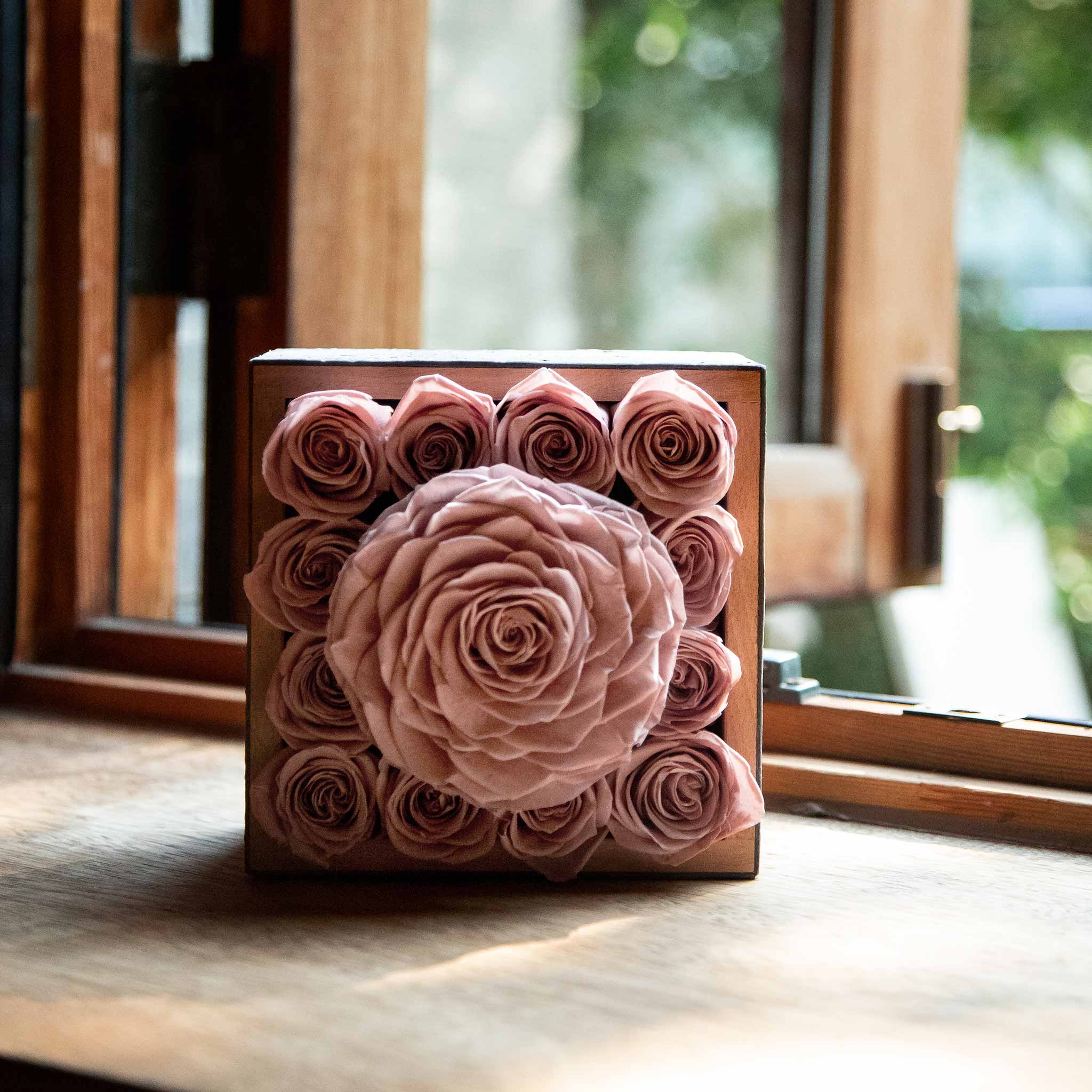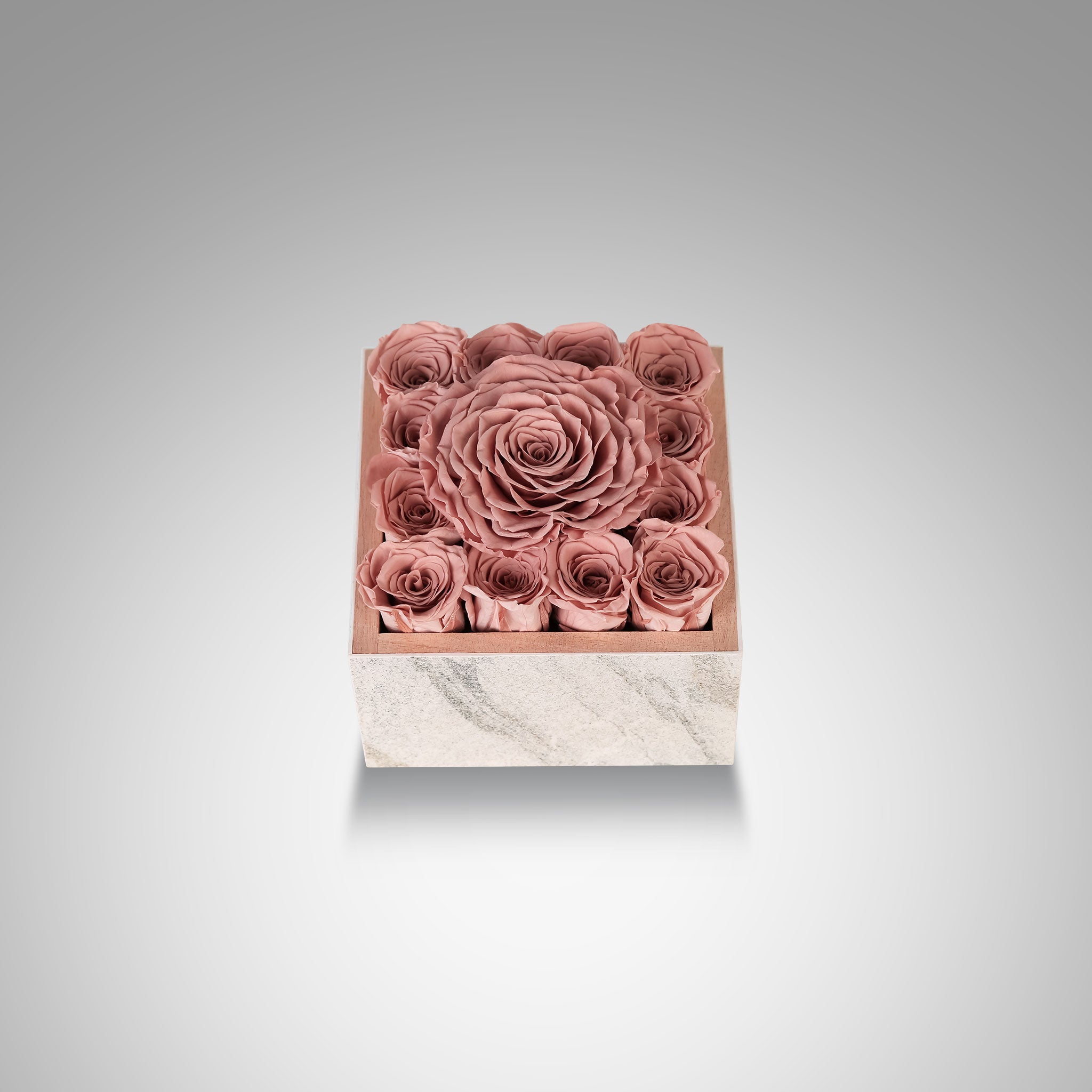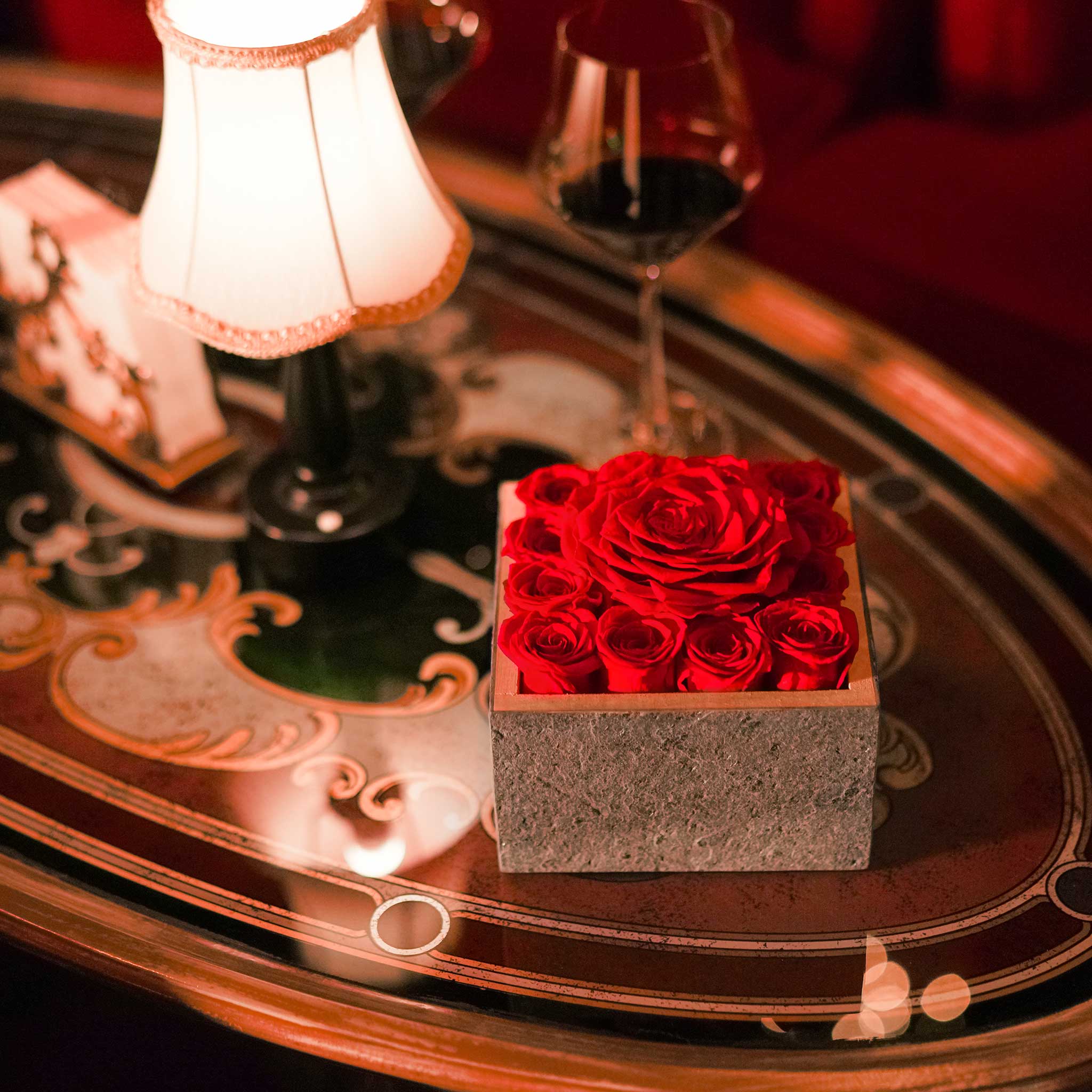 The Pāsāna Collection is an artistic confluence of three pieces of nature: a rose centerpiece, a wooden vessel and a stone facade.