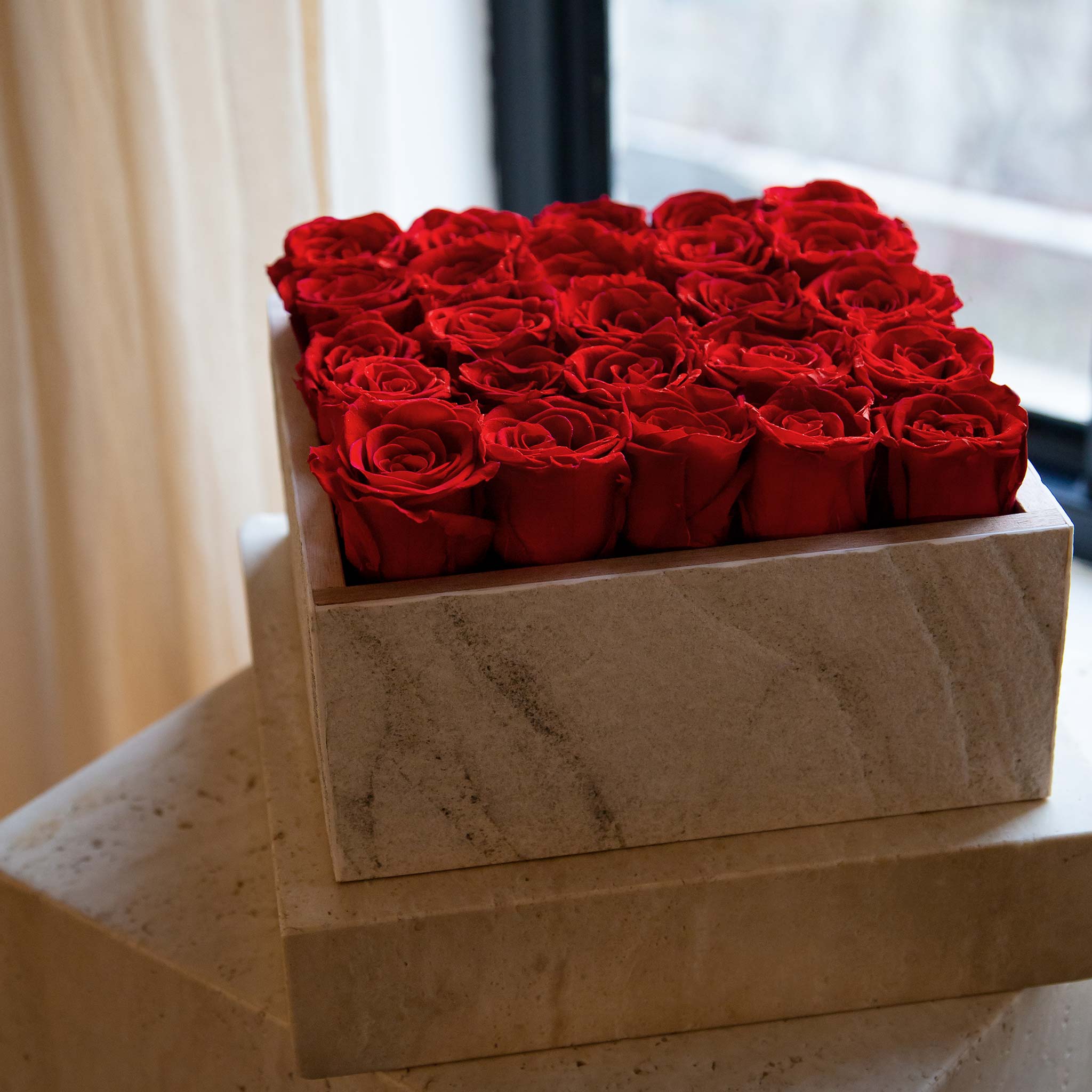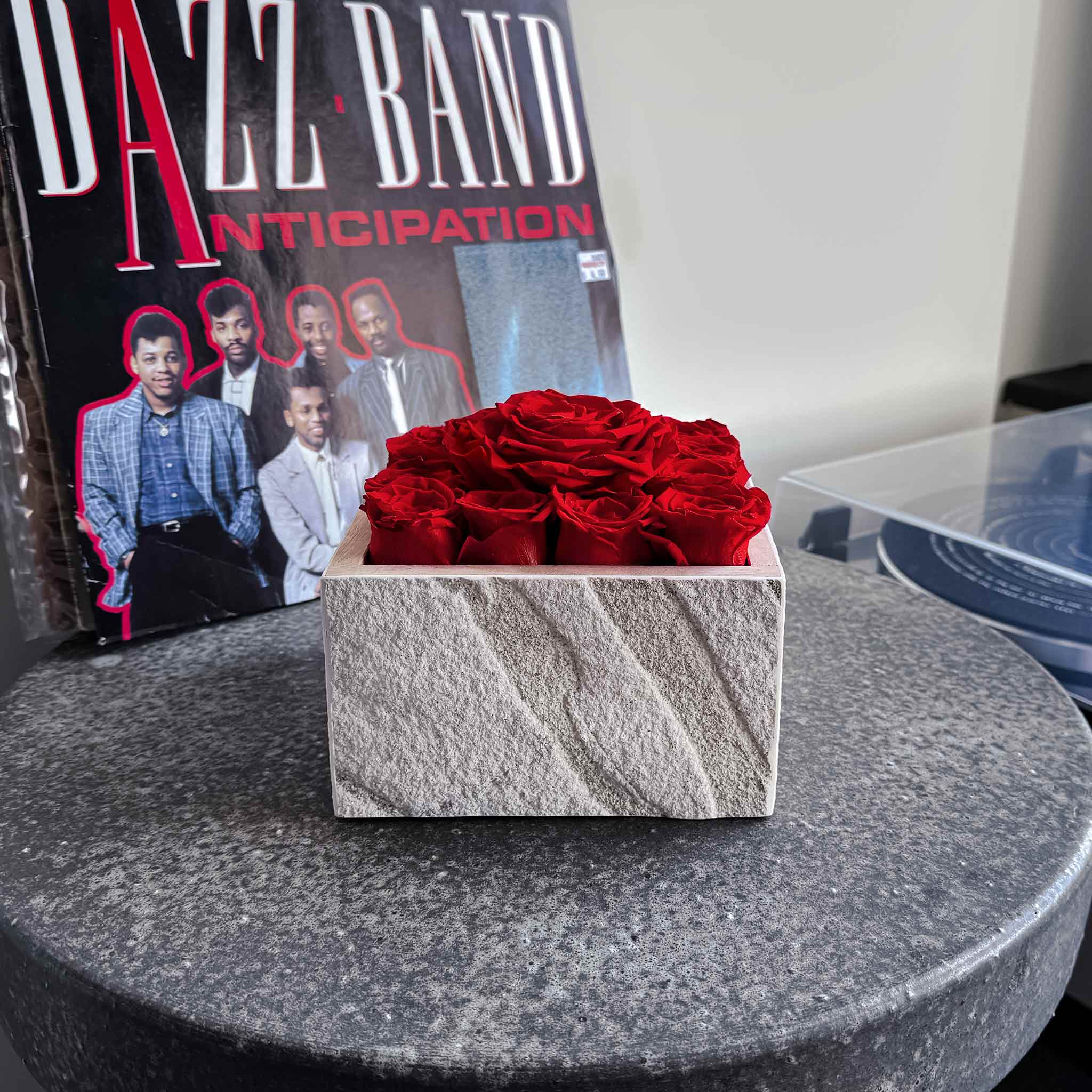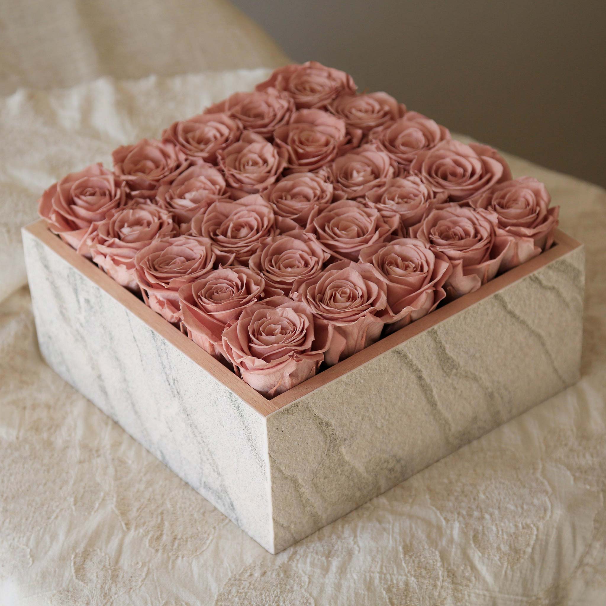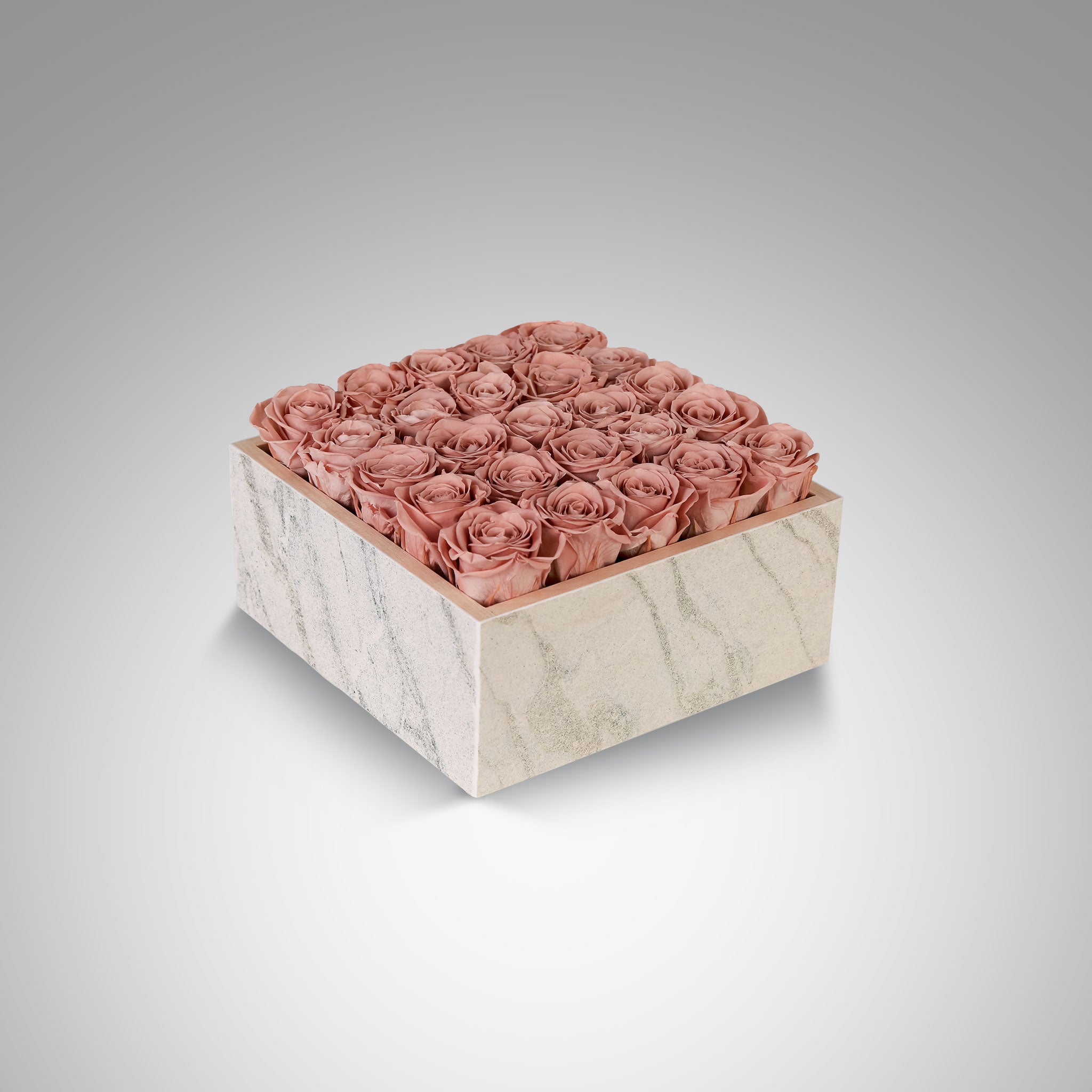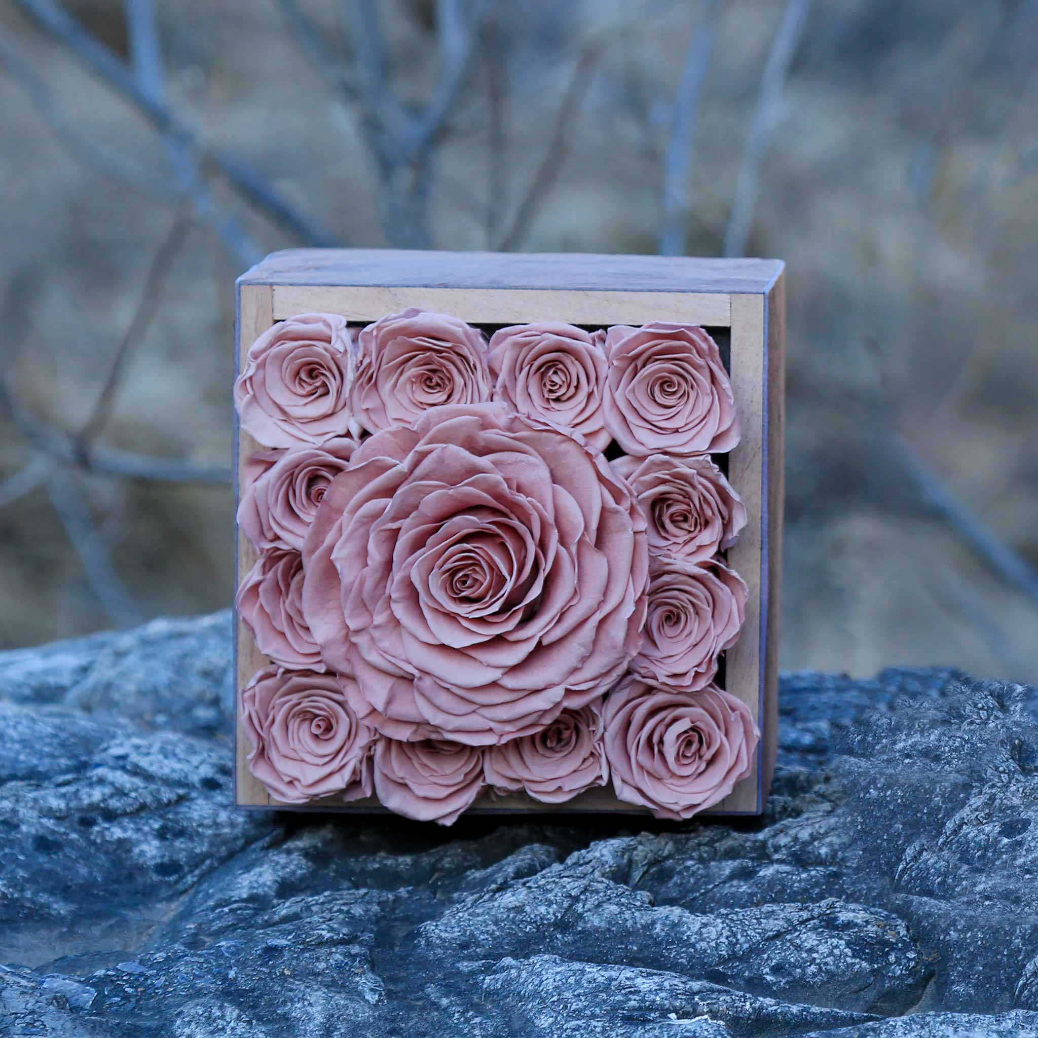 The Pāsāna Collection is an artistic confluence of three pieces of nature: a rose centerpiece, a wooden vessel and a stone facade.