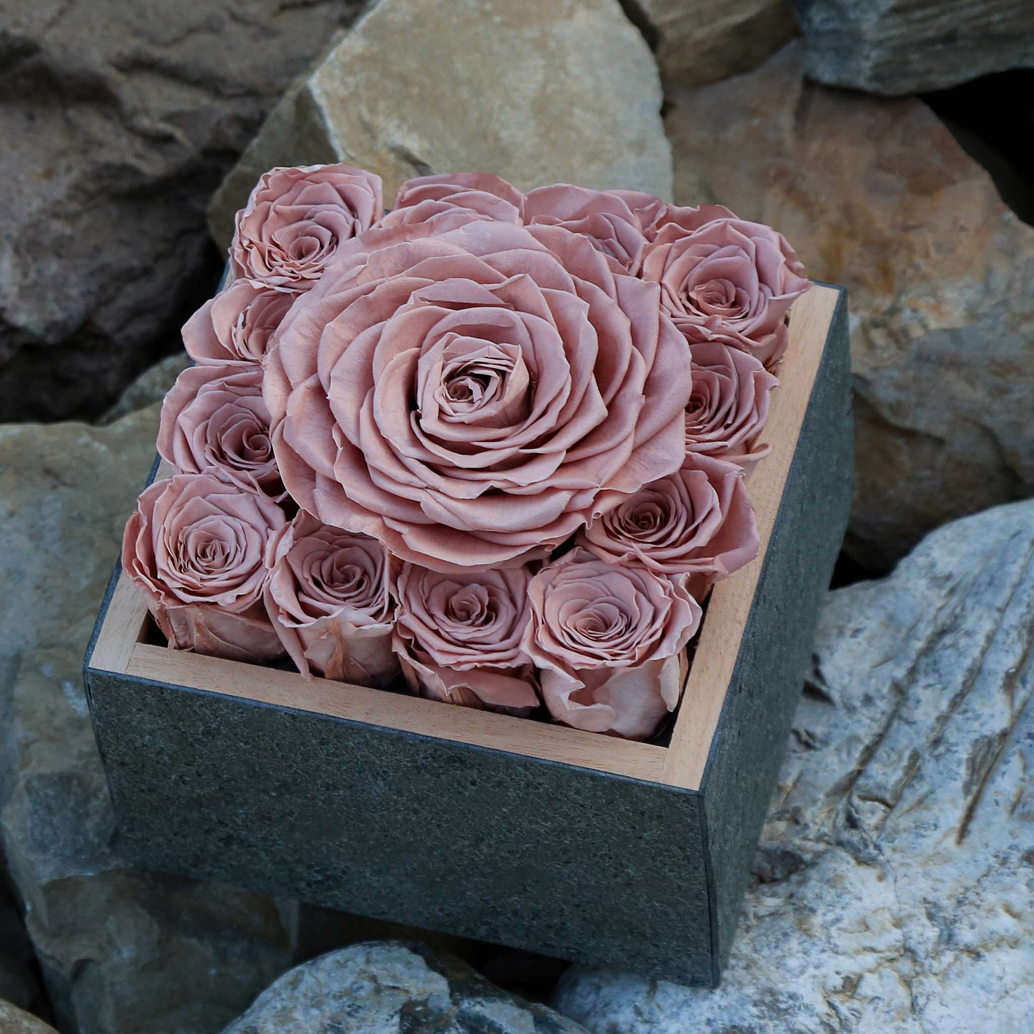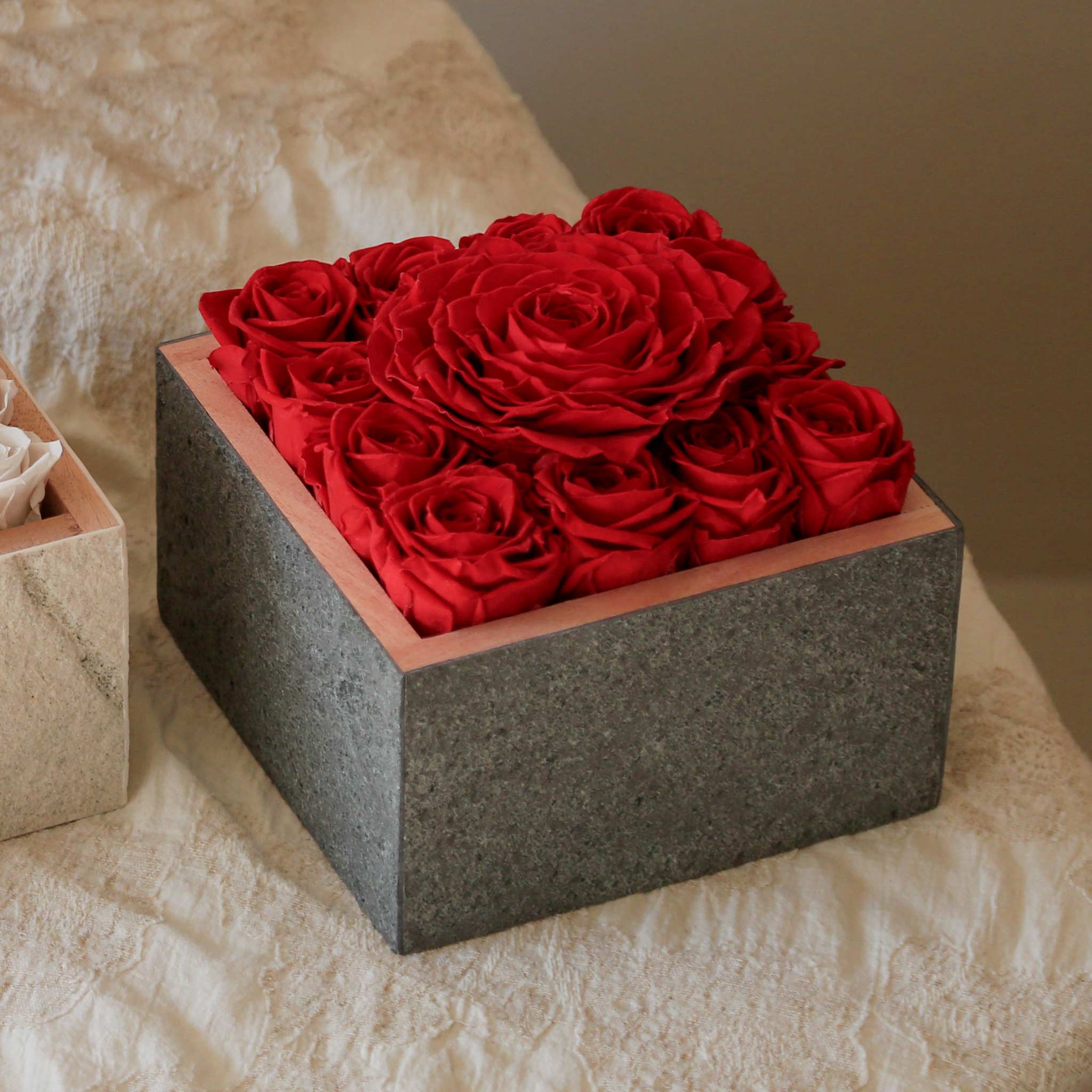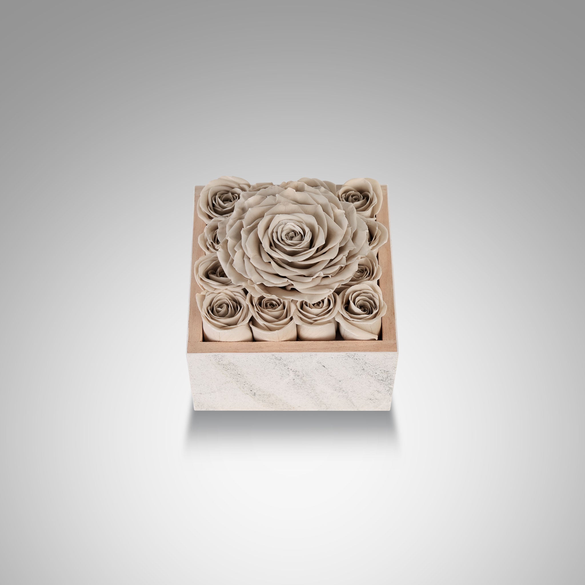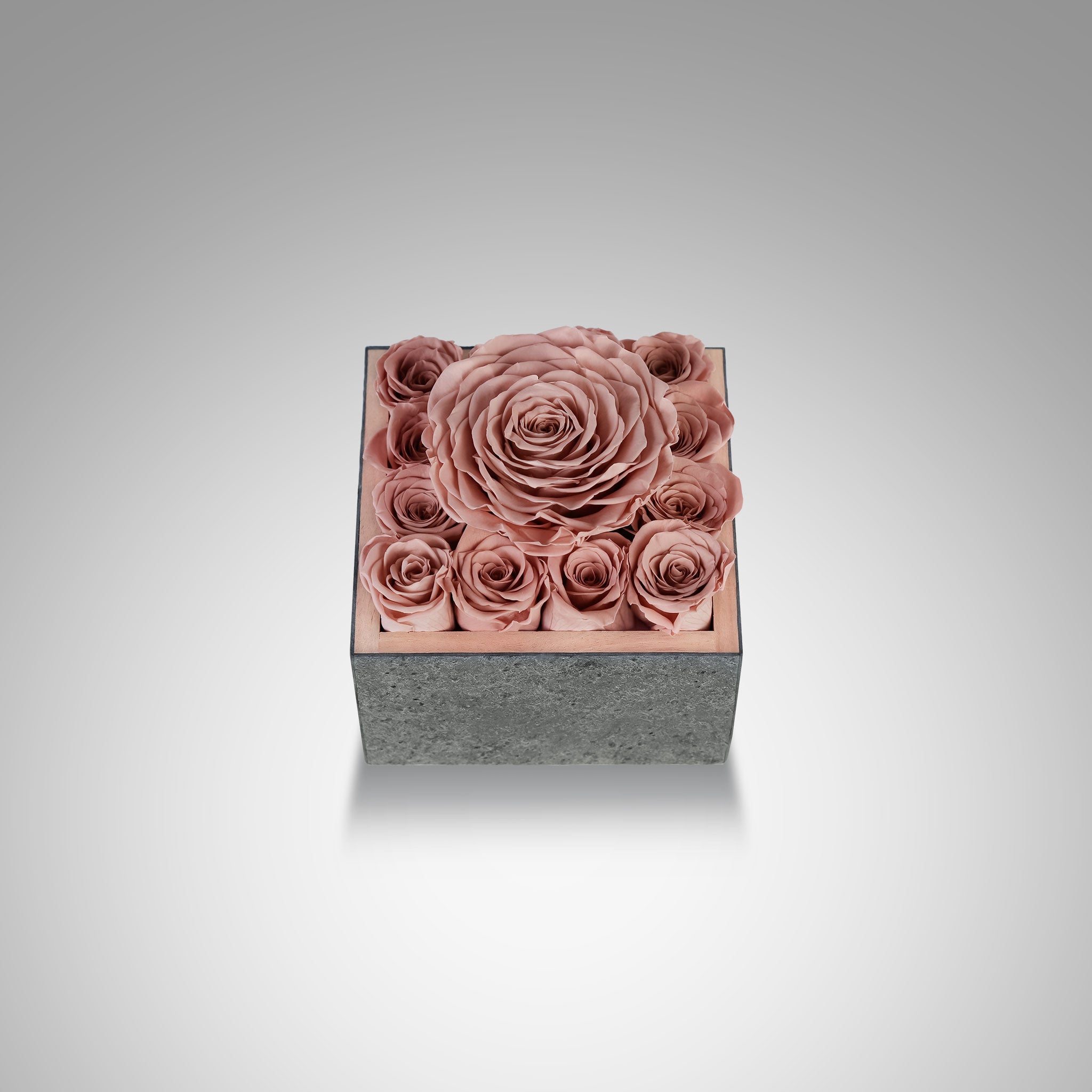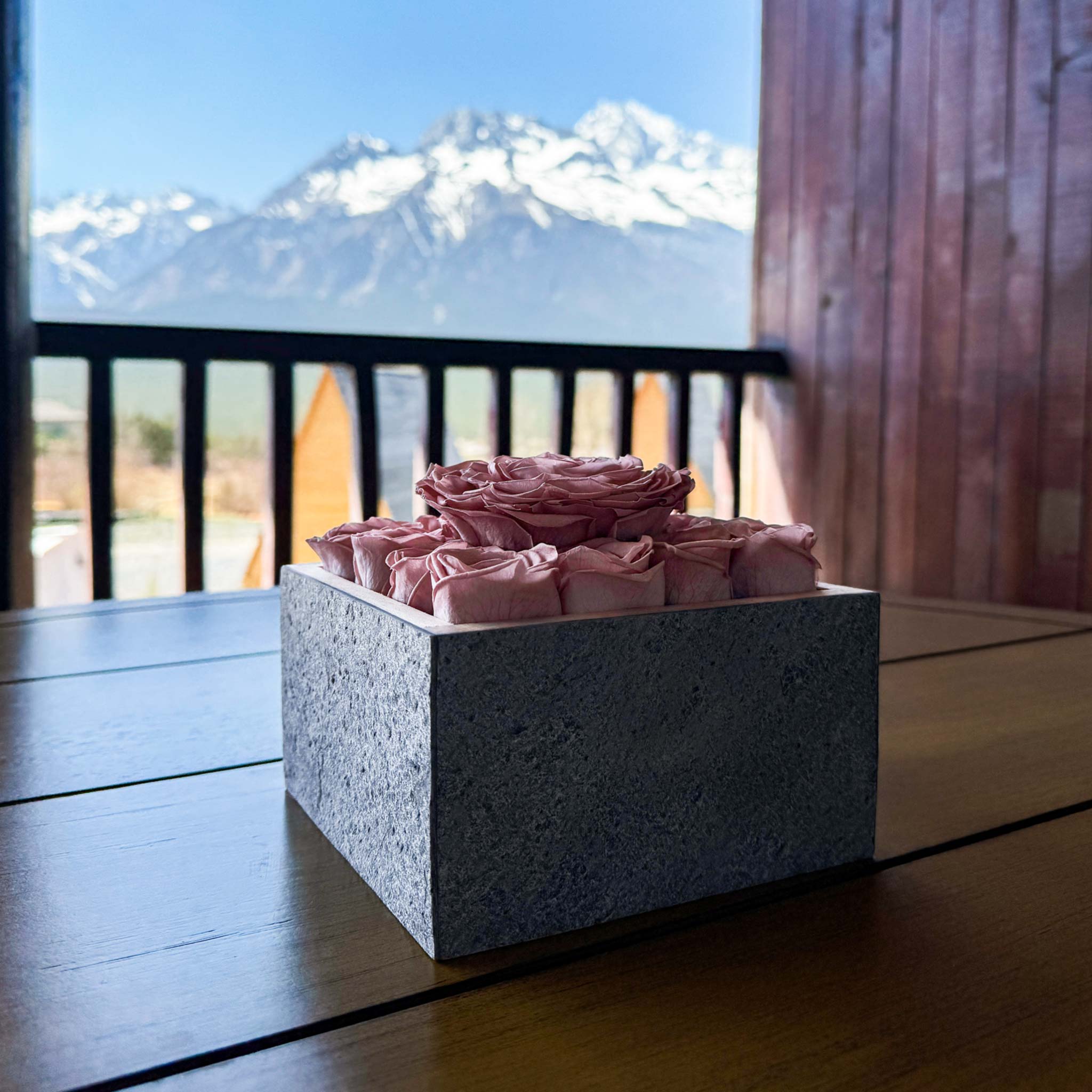 The Pāsāna Collection is an artistic confluence of three pieces of nature: a rose centerpiece, a wooden vessel and a stone facade.