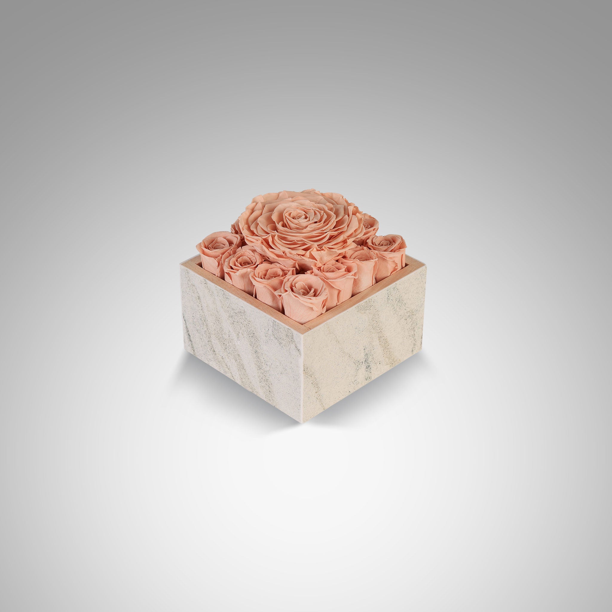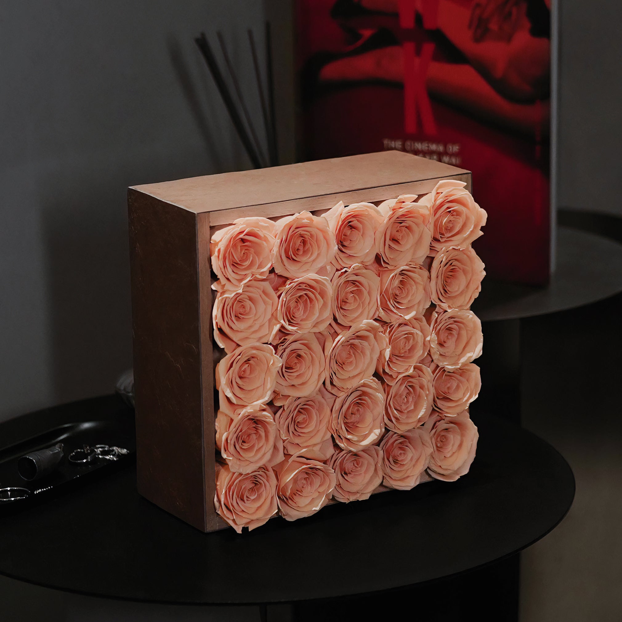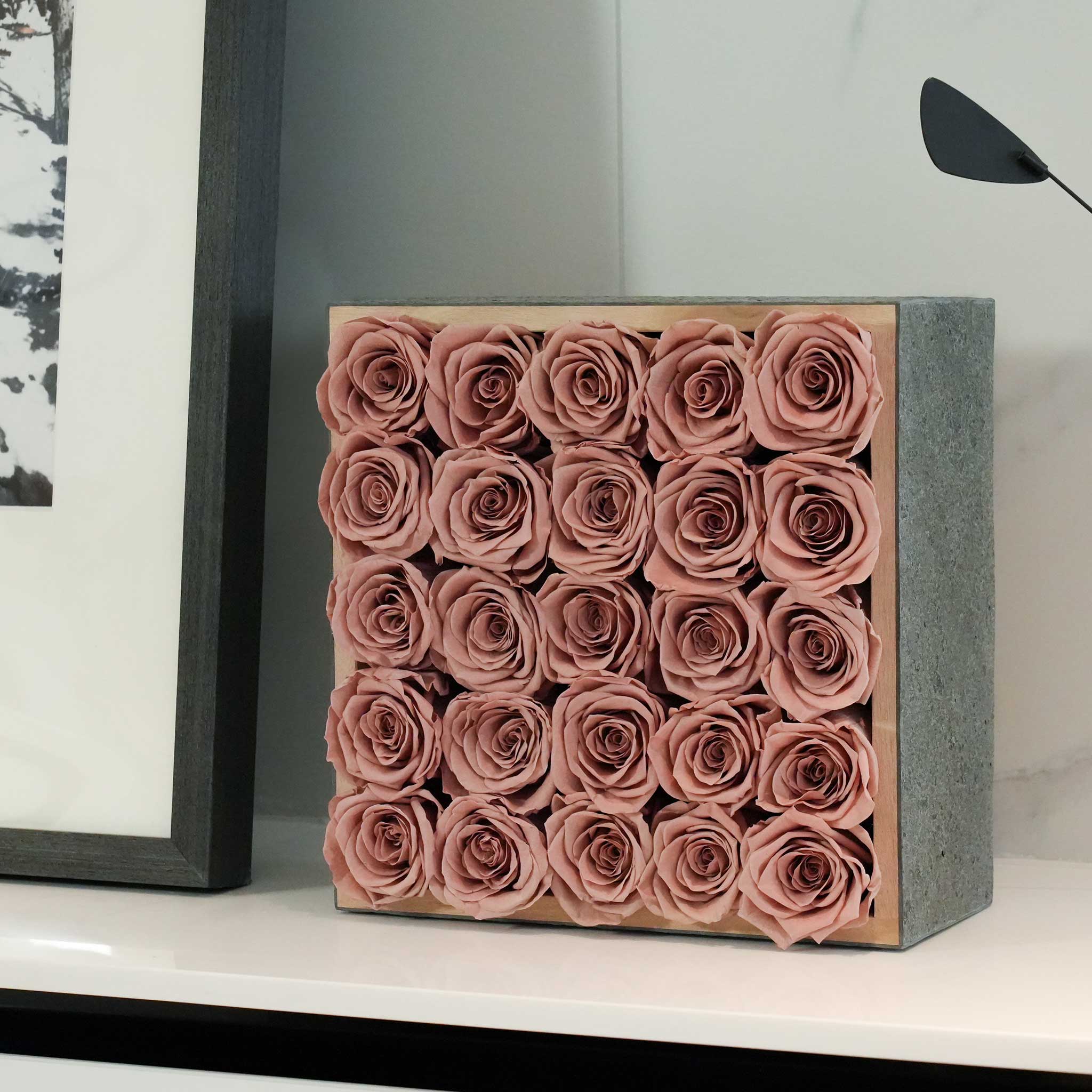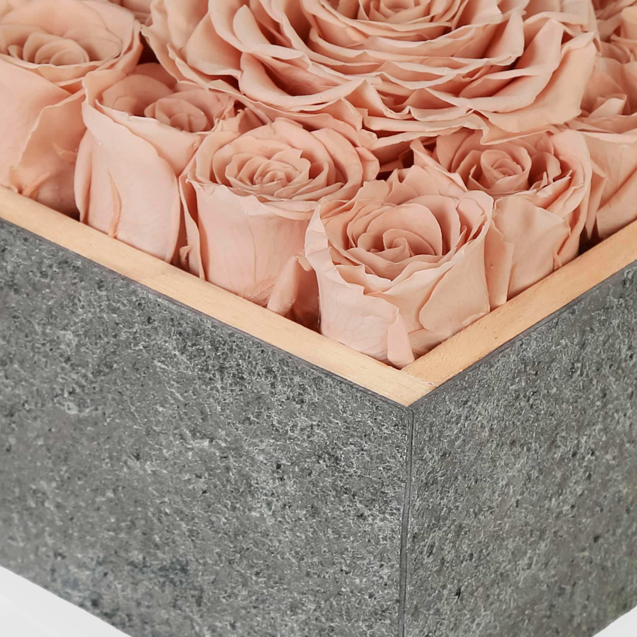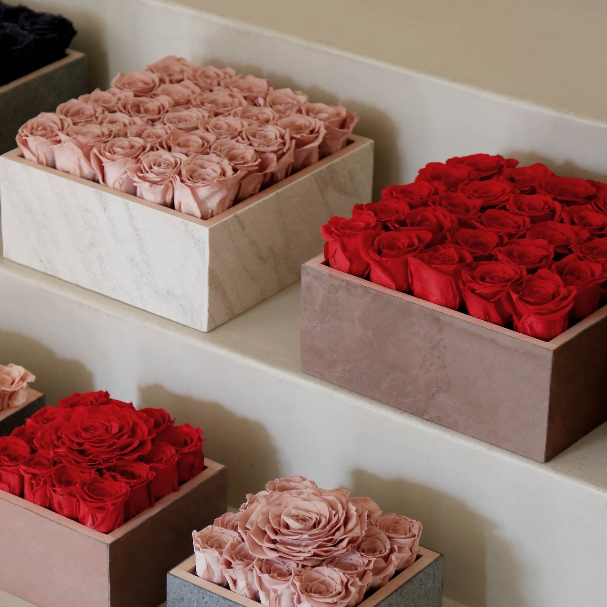 The Pāsāna Collection is an artistic confluence of three pieces of nature: a rose centerpiece, a wooden vessel and a stone facade.