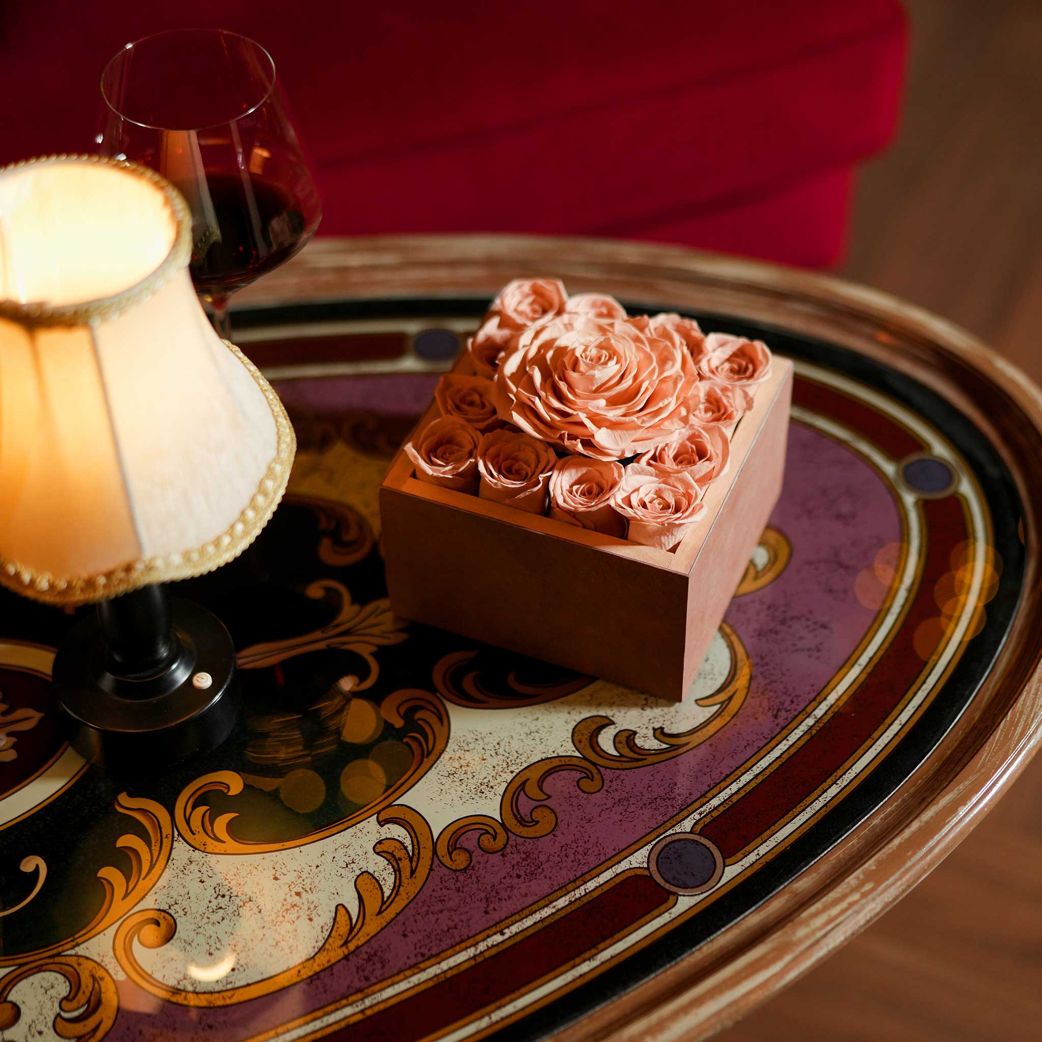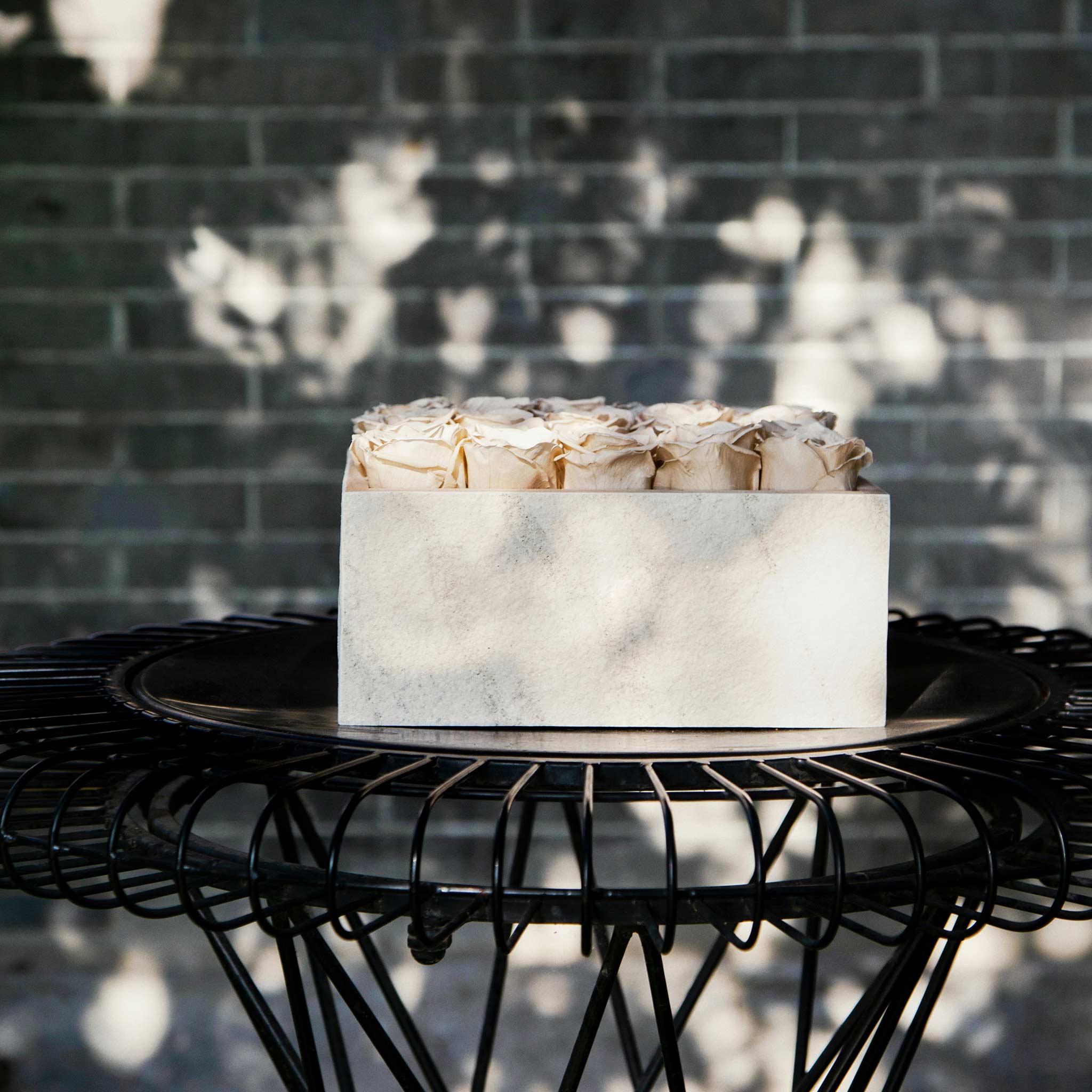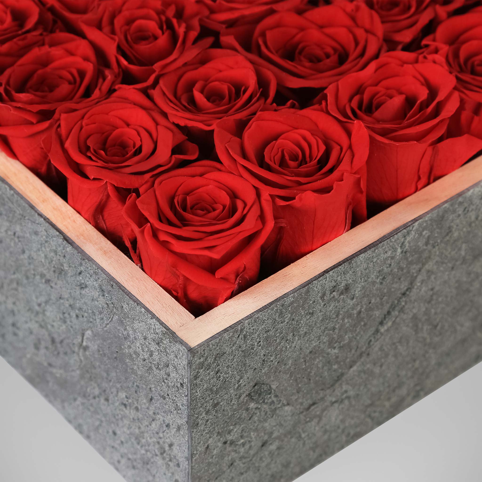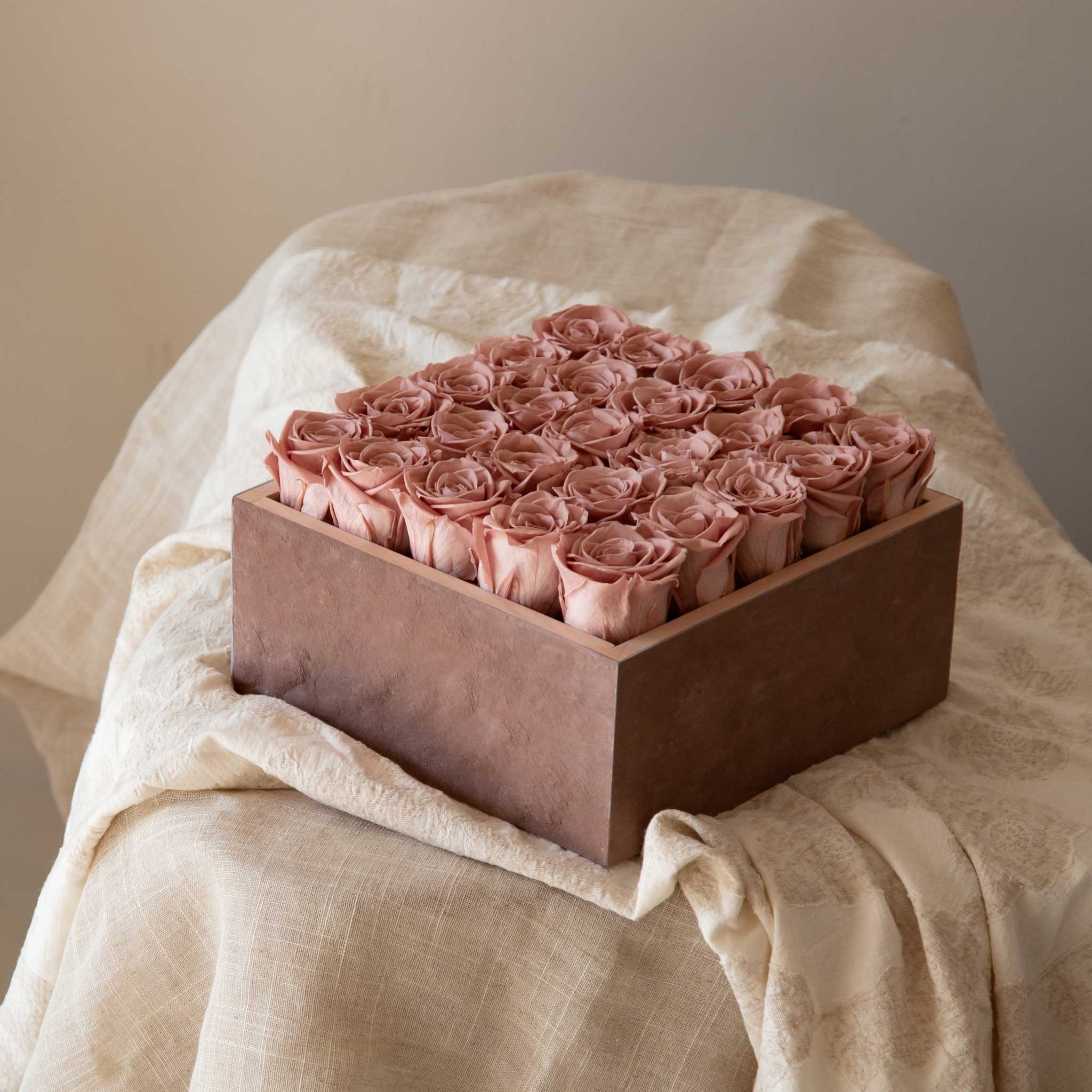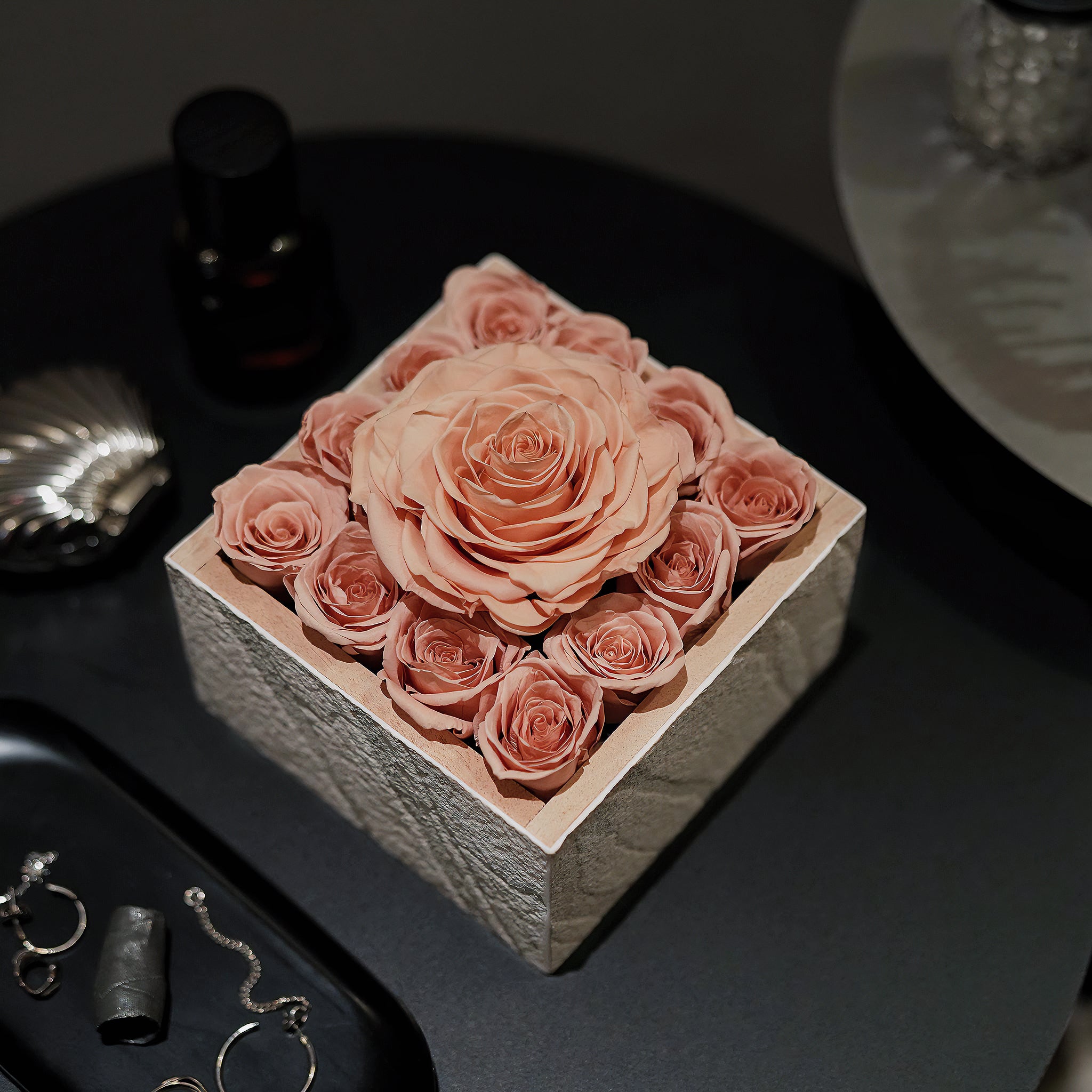 The Pāsāna Collection is an artistic confluence of three pieces of nature: a rose centerpiece, a wooden vessel and a stone facade.