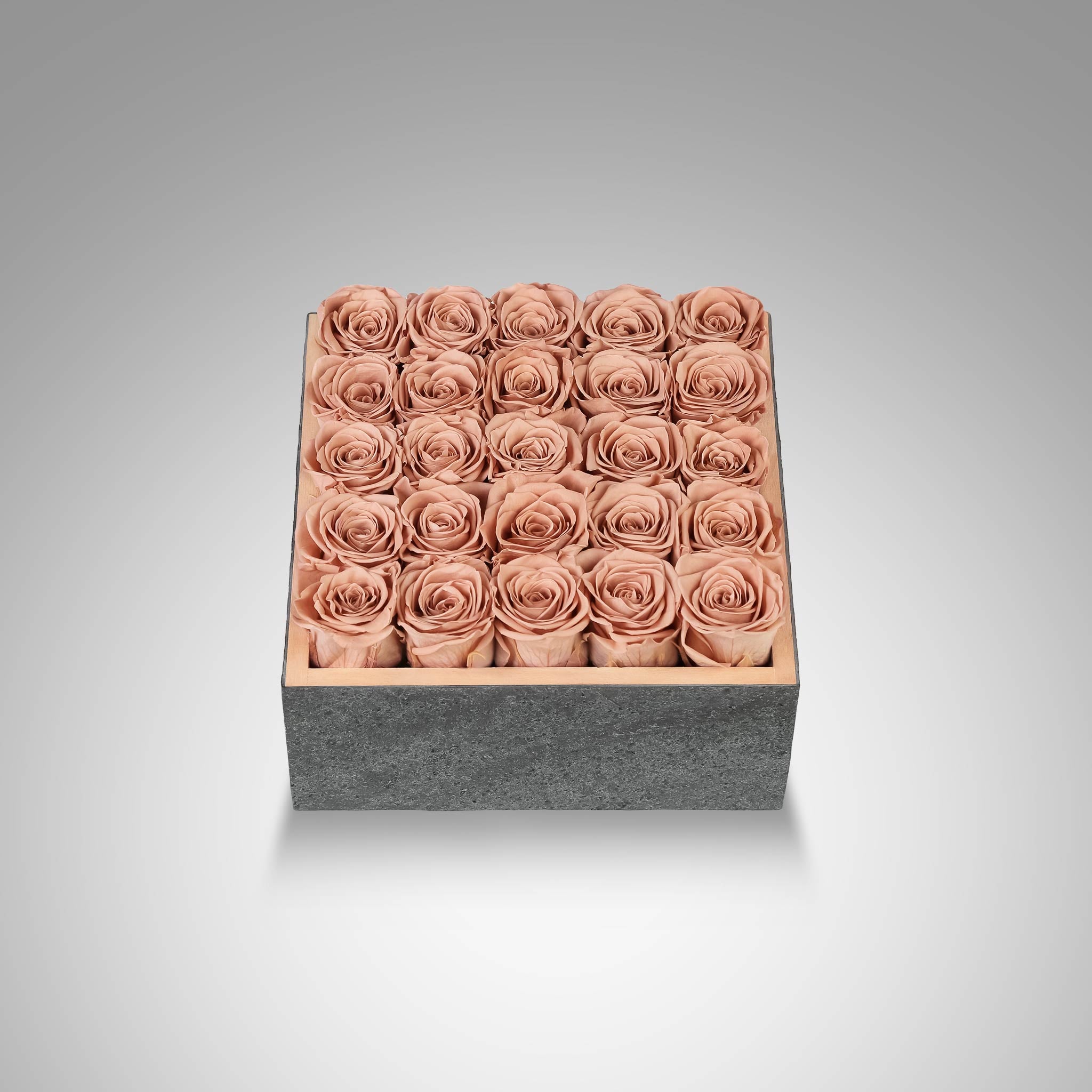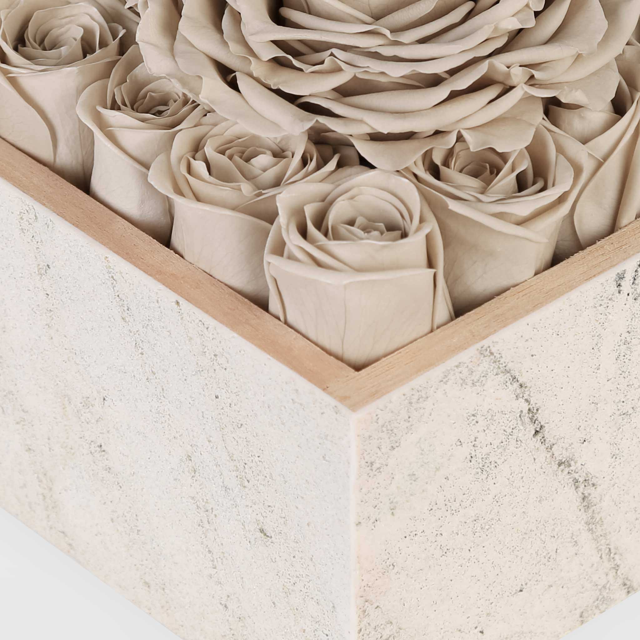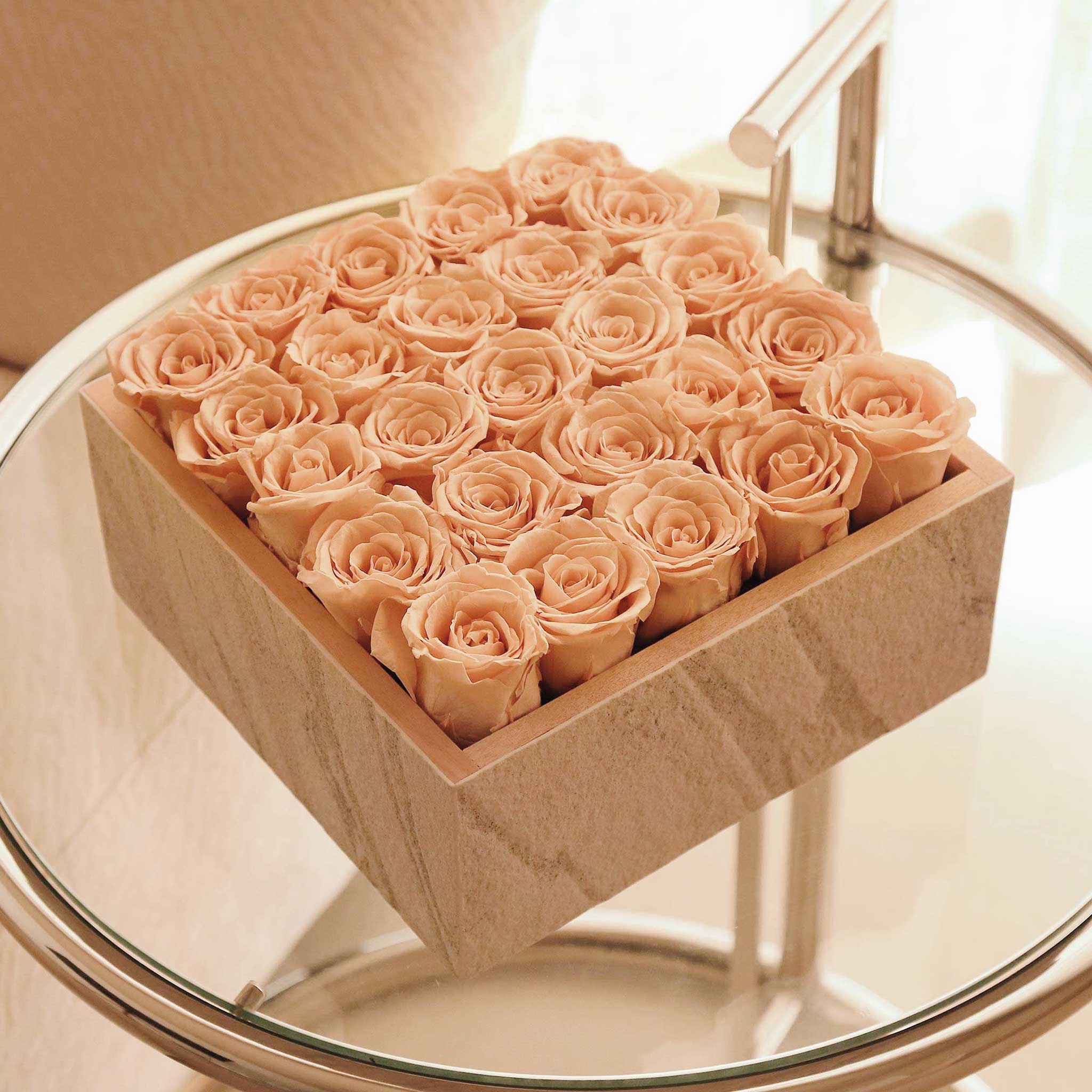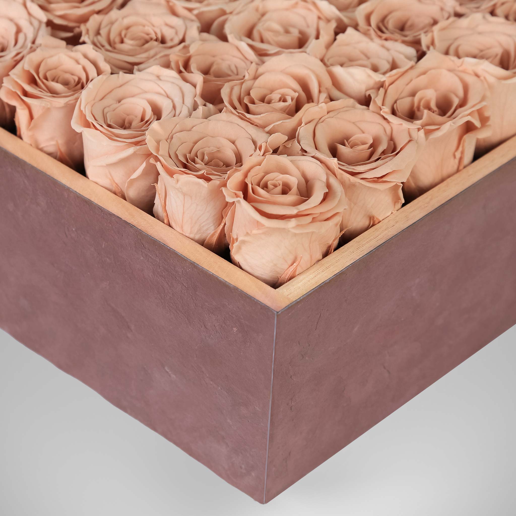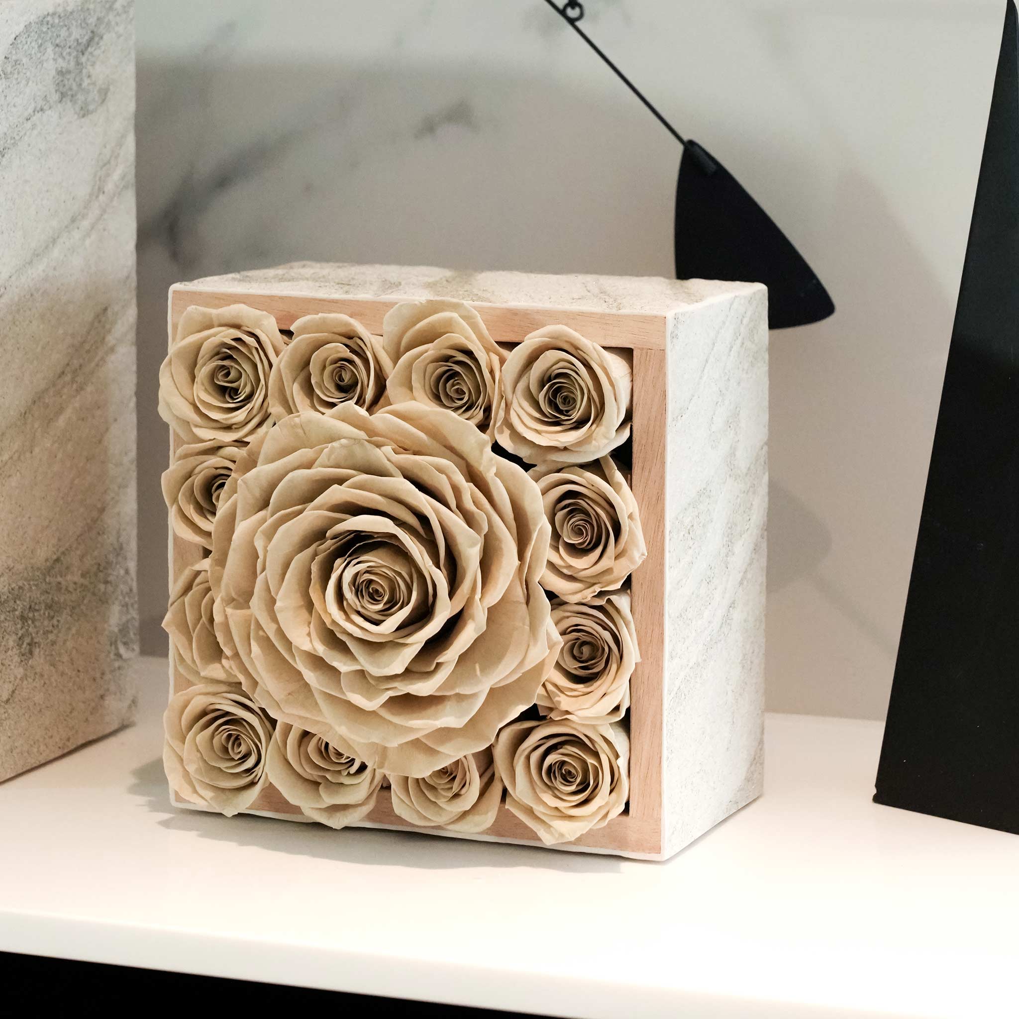The Pāsāna Collection is an artistic confluence of three pieces of nature: a rose centerpiece, a wooden vessel and a stone facade.