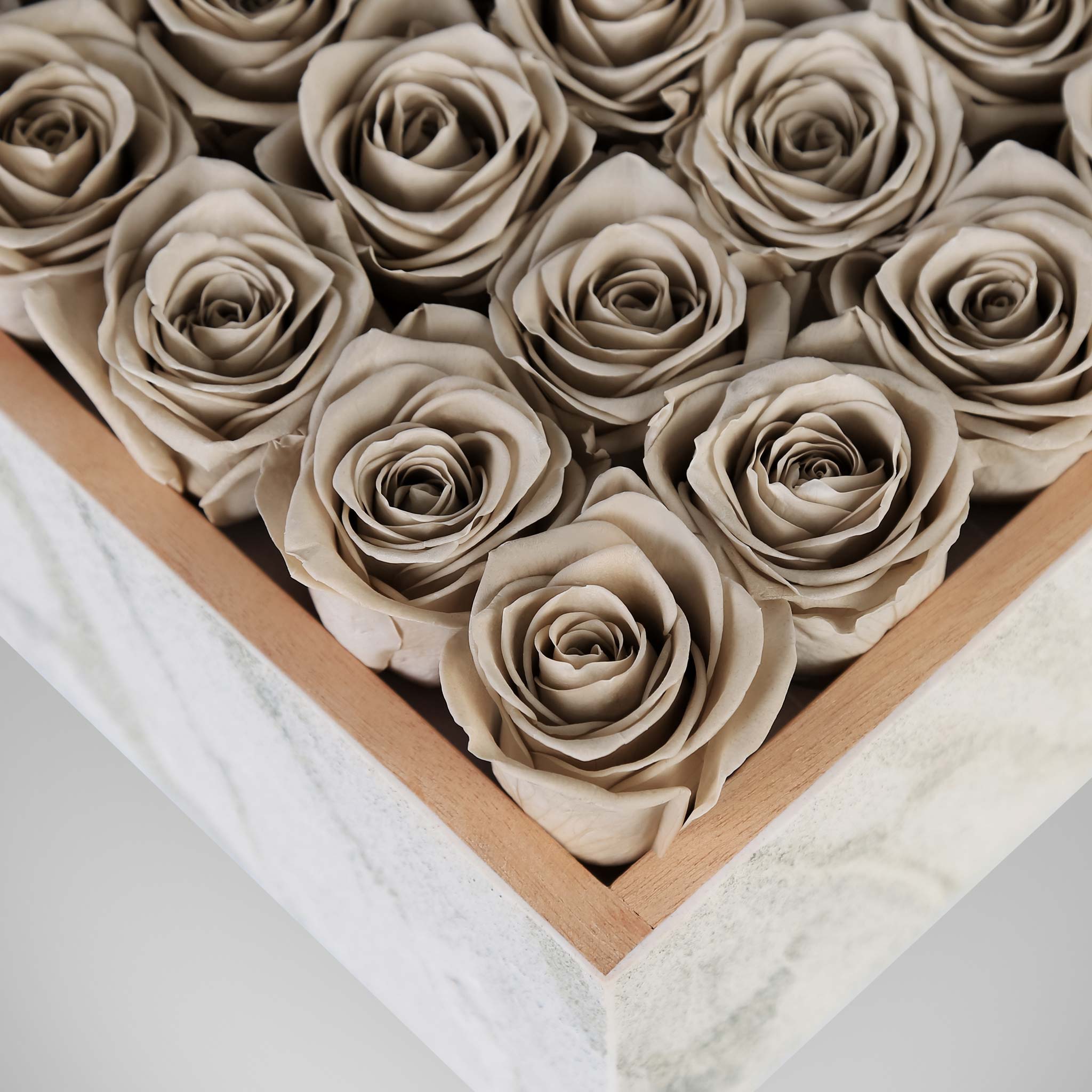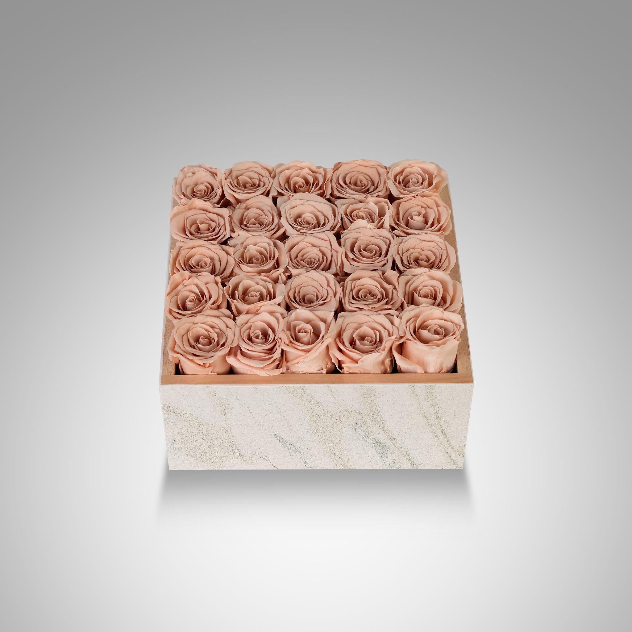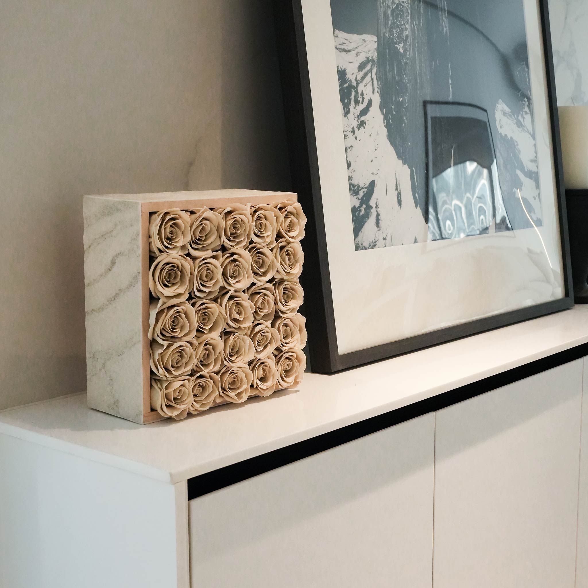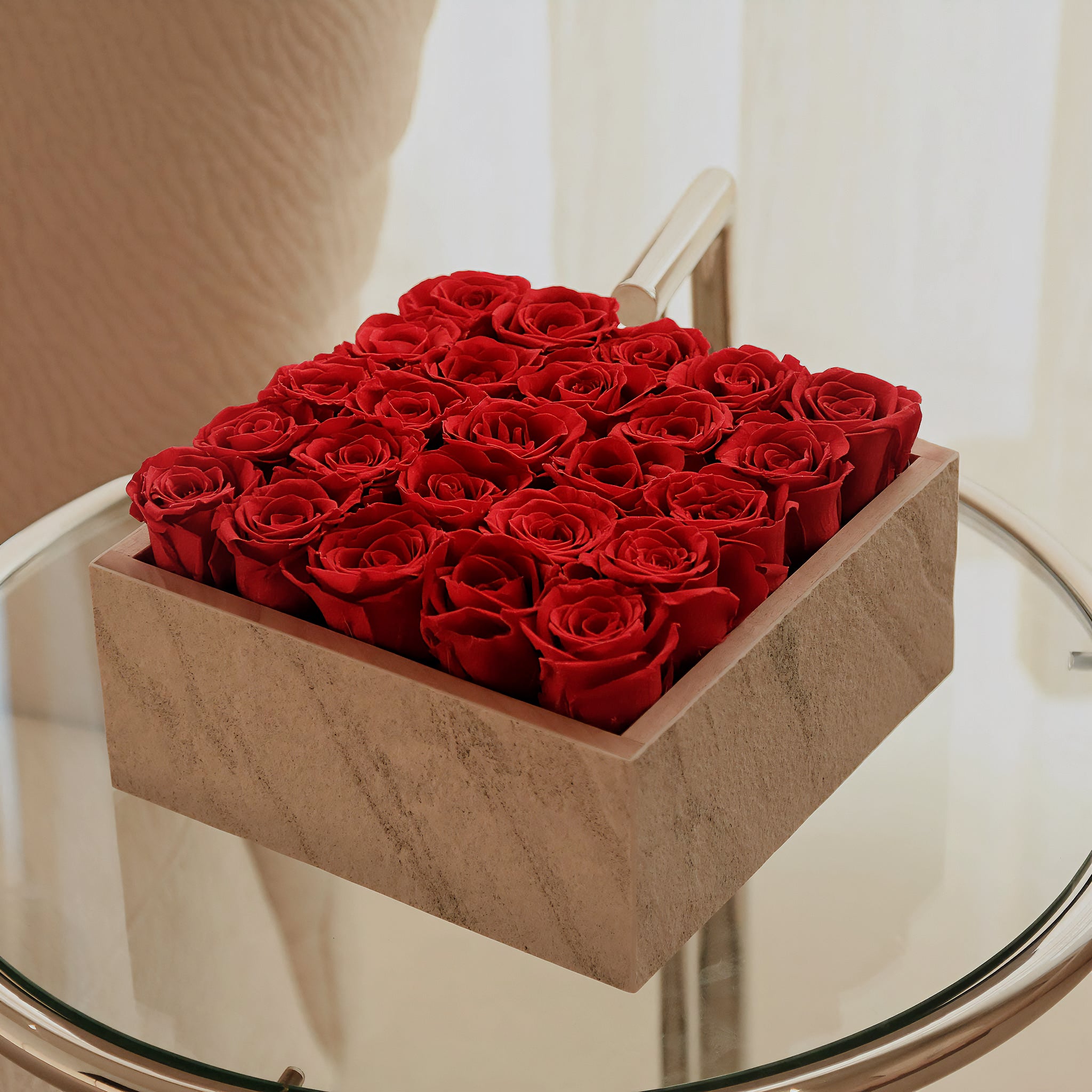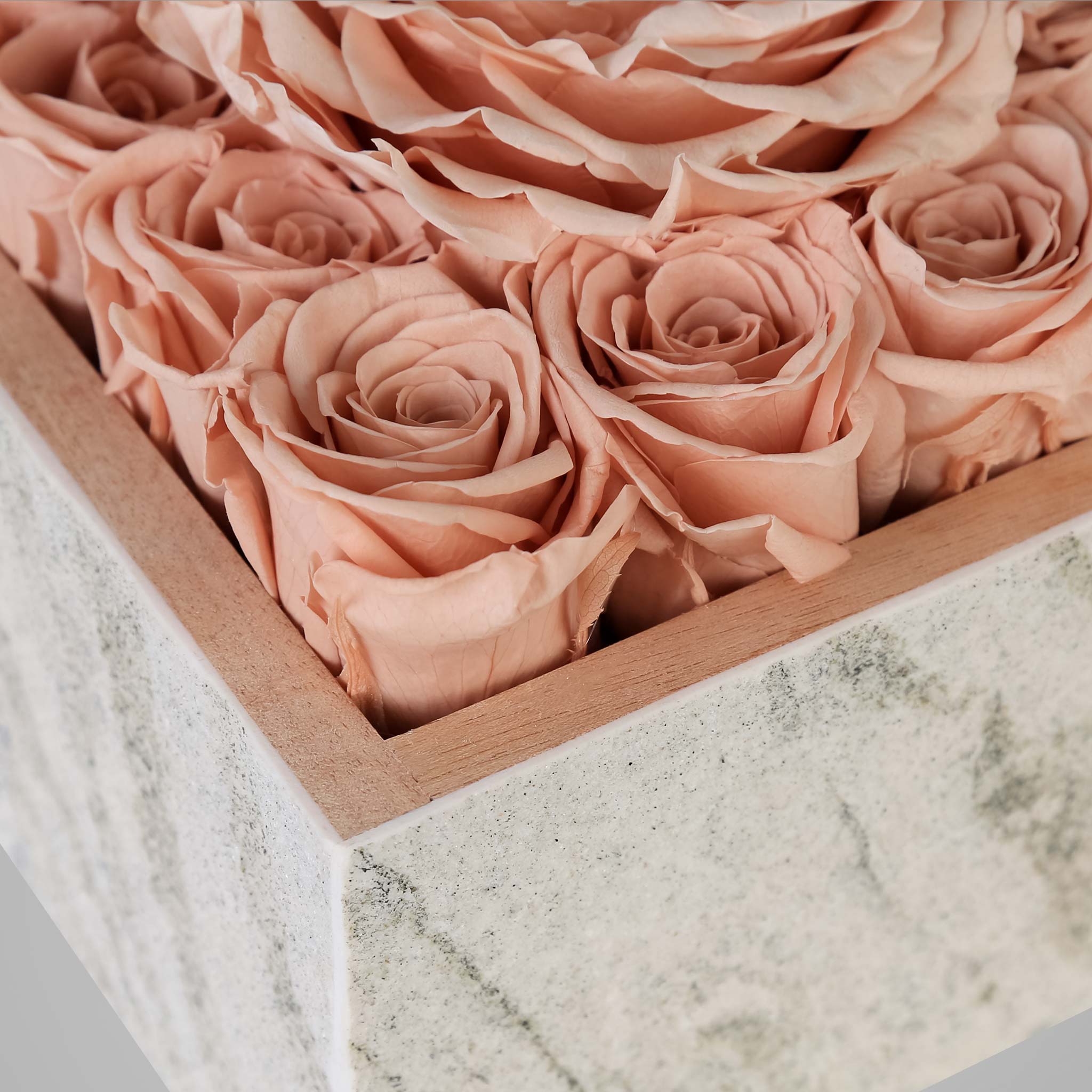 The Pāsāna Collection is an artistic confluence of three pieces of nature: a rose centerpiece, a wooden vessel and a stone facade.