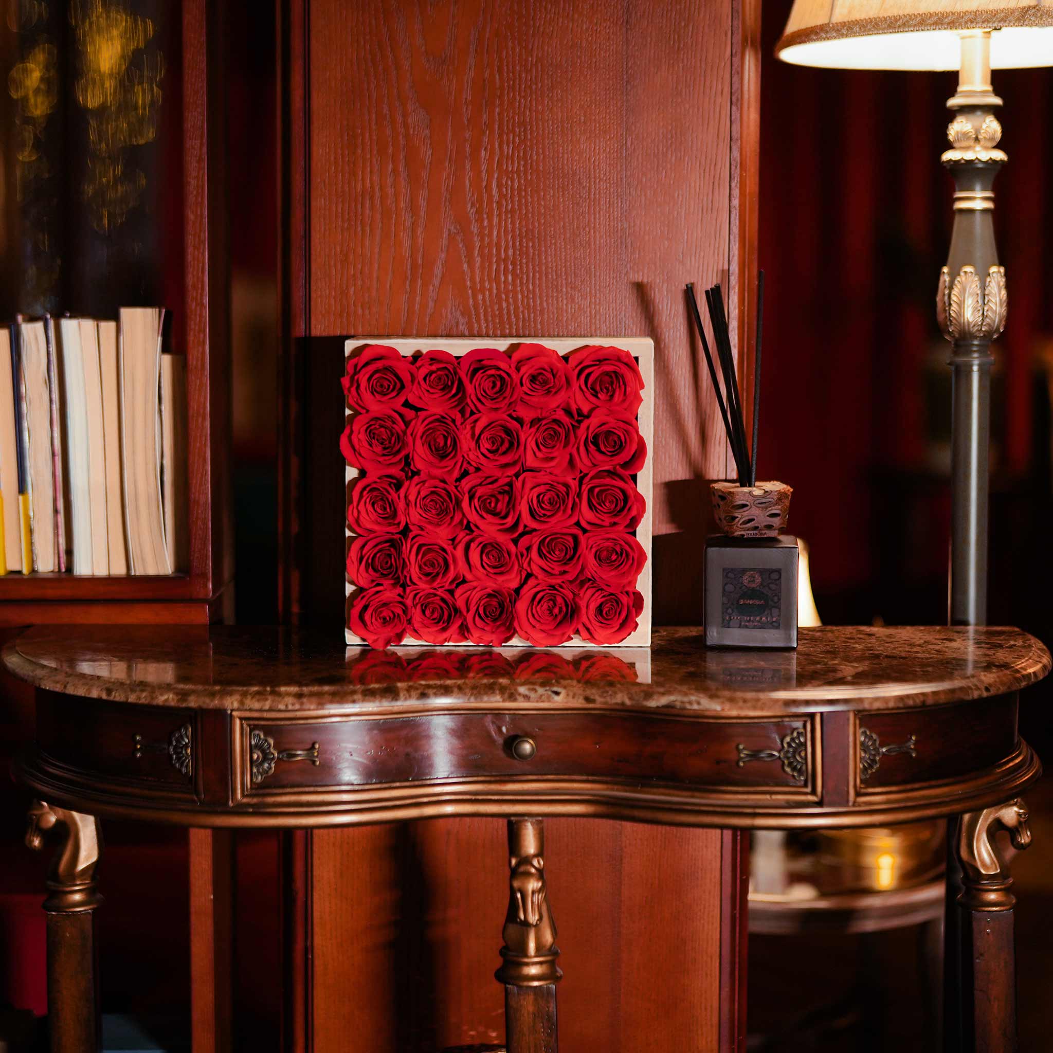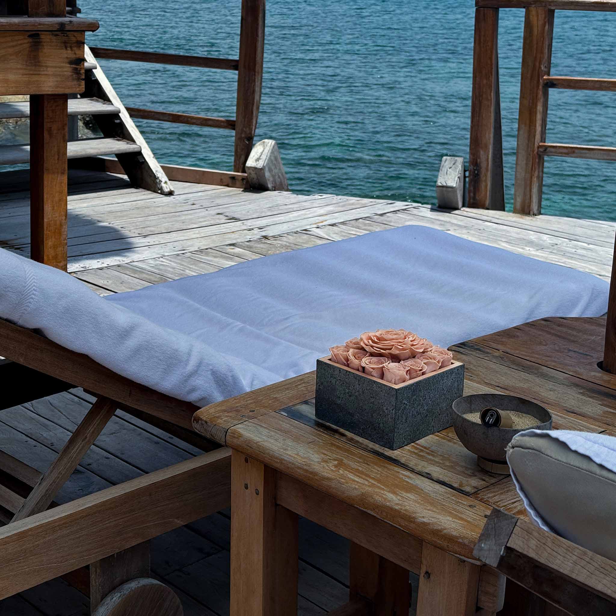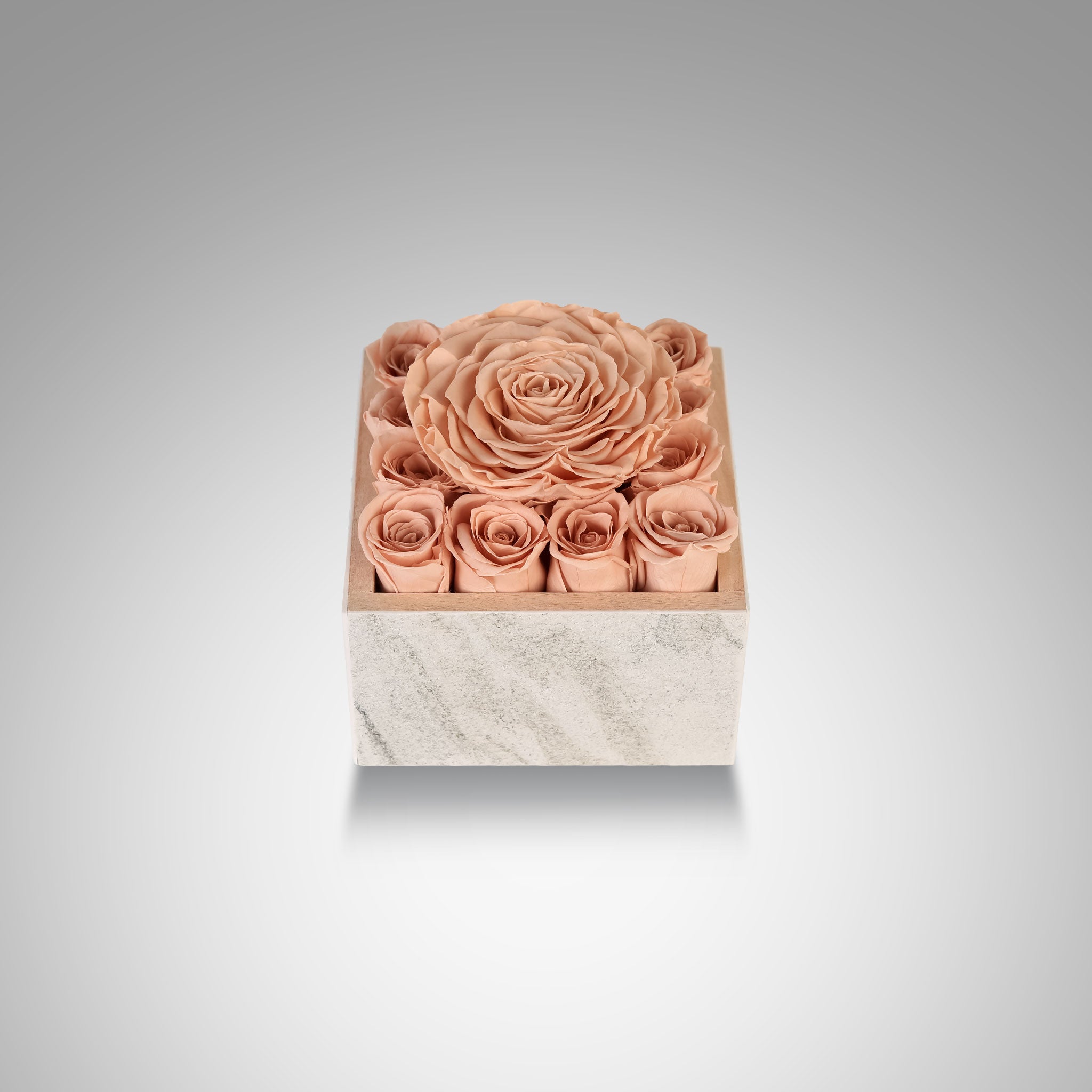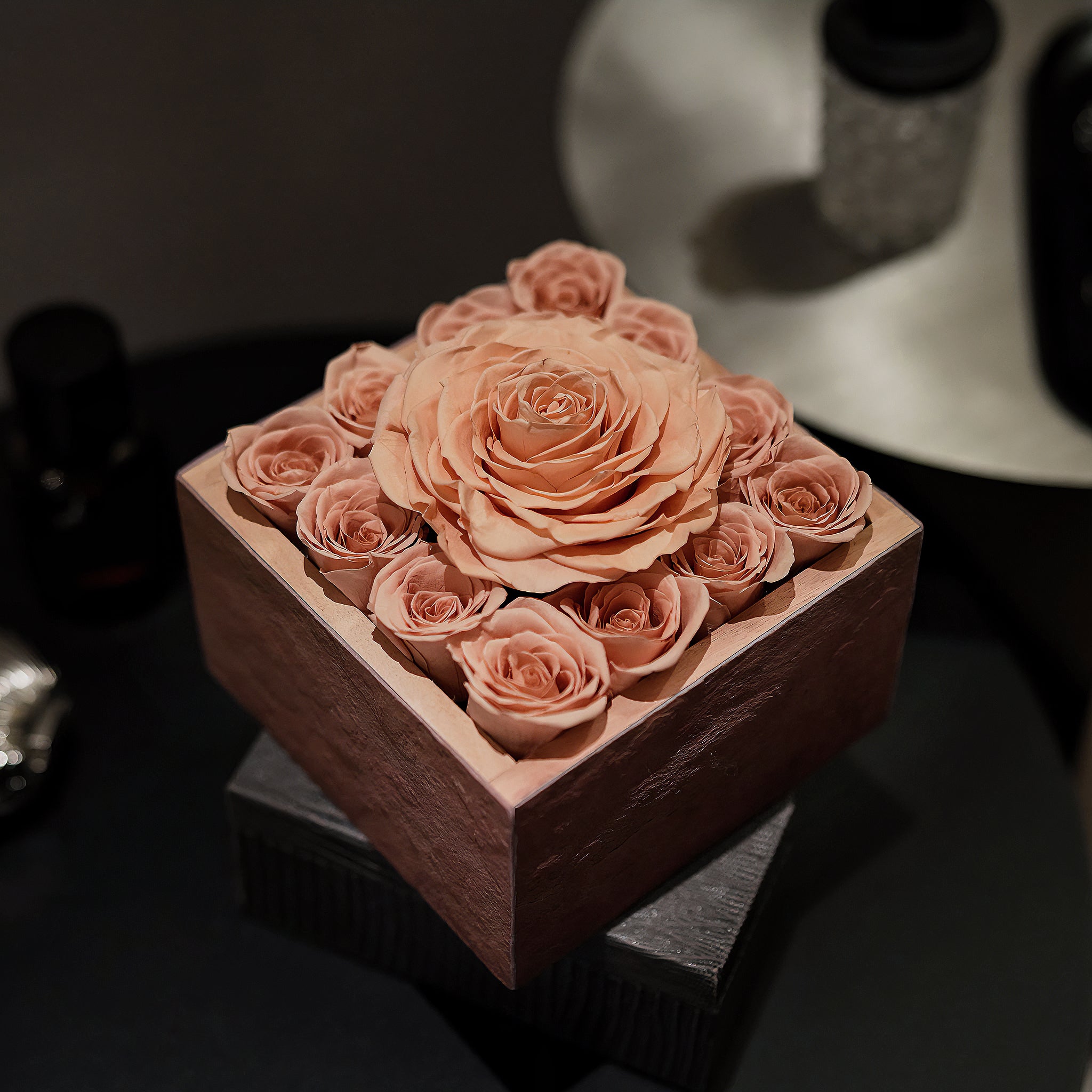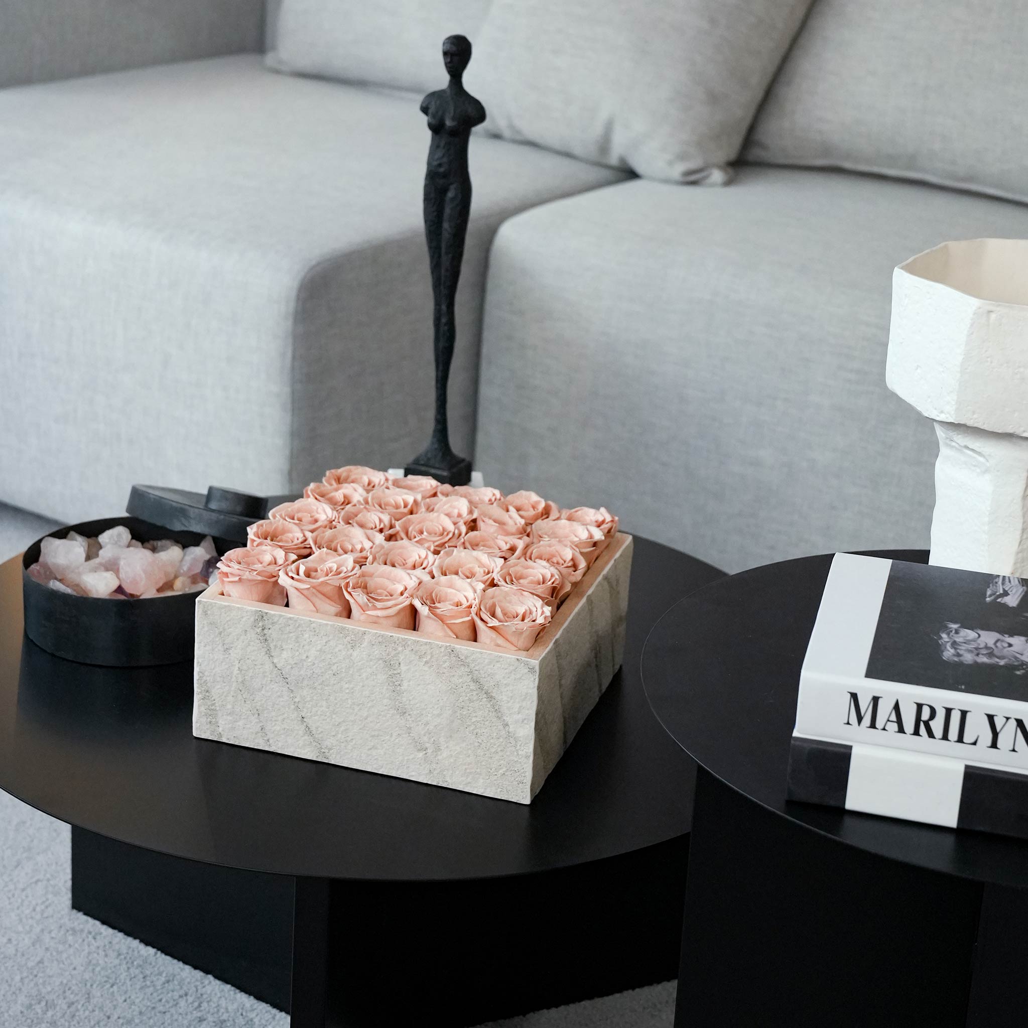 The Pāsāna Collection is an artistic confluence of three pieces of nature: a rose centerpiece, a wooden vessel and a stone facade.
